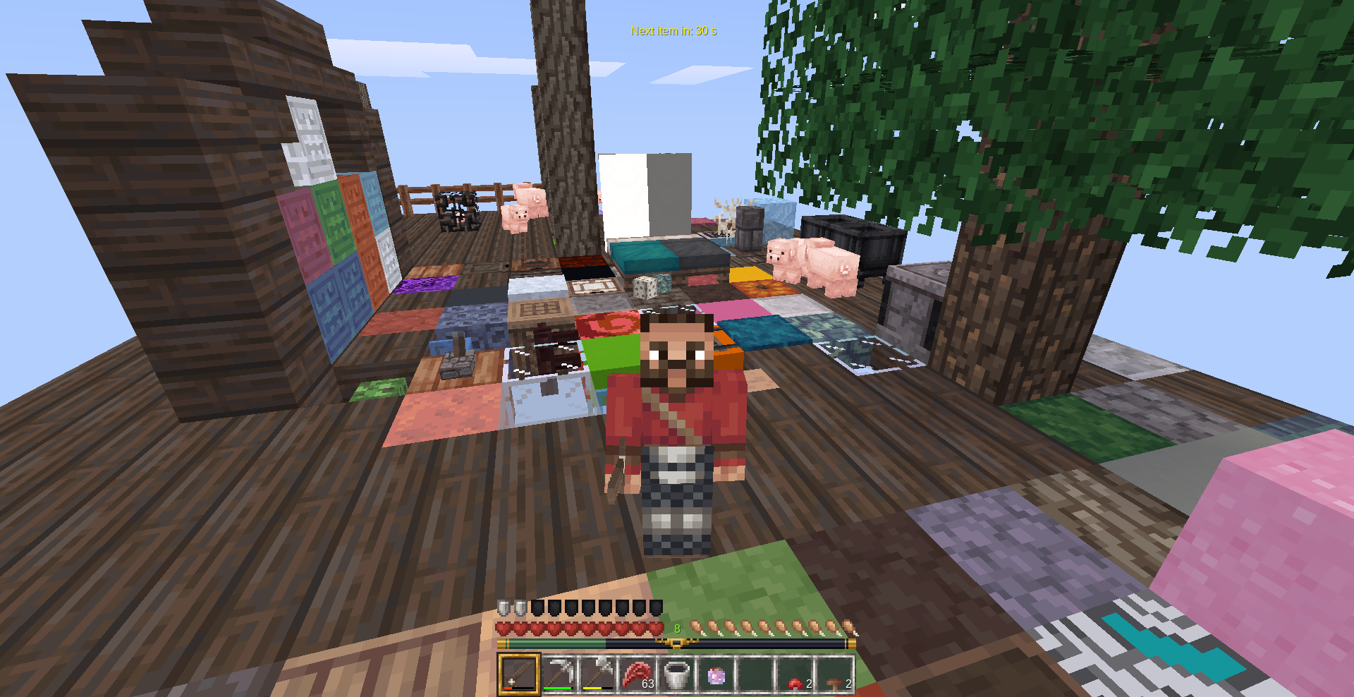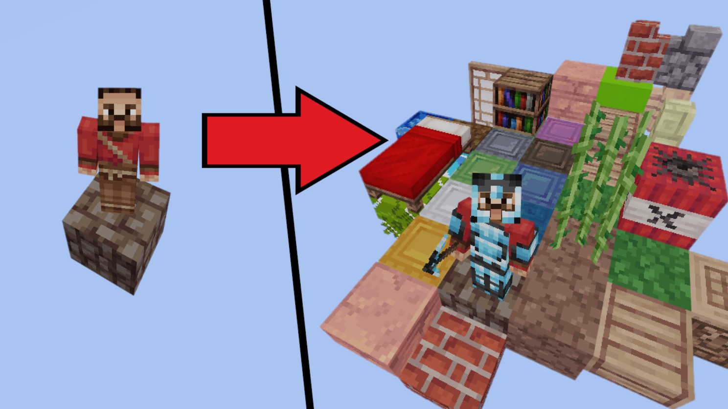 Build your island in the sky. Every 30 seconds you will receive a random block or item from the oneblock to expand the island!
