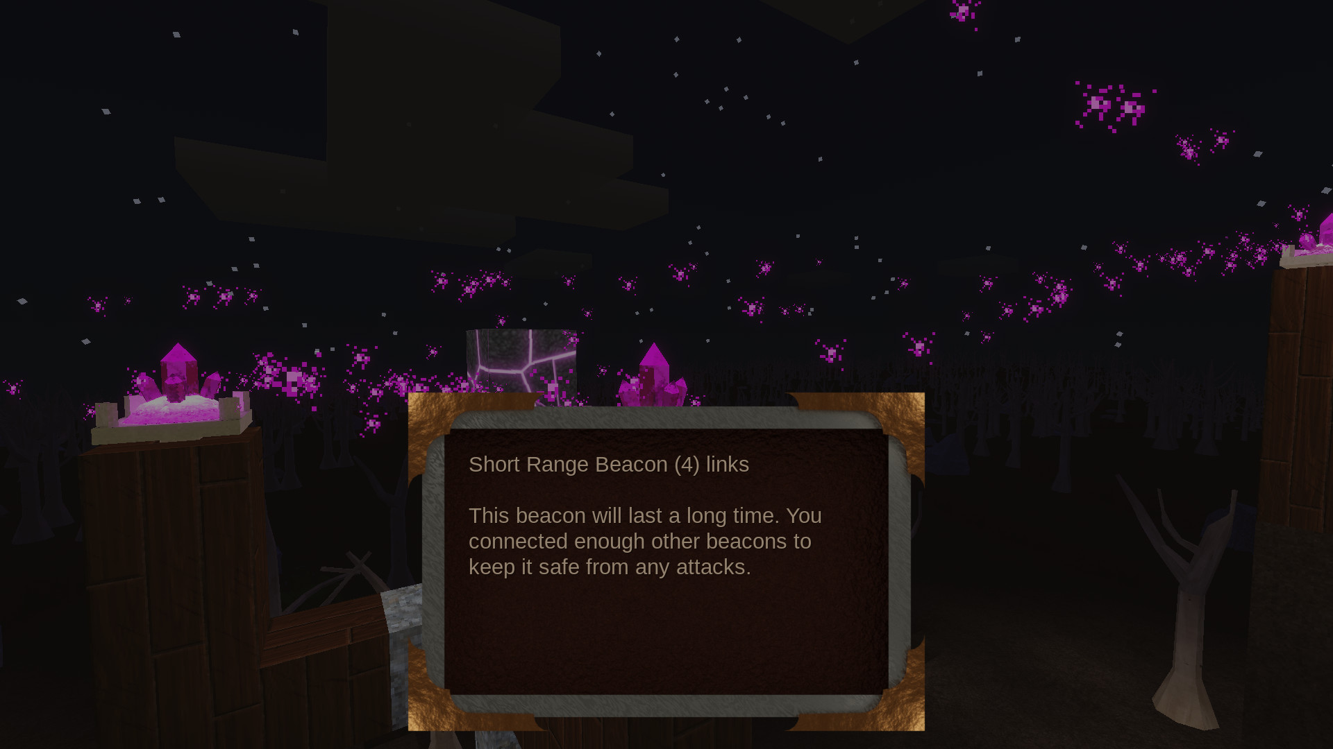 The first thing you see is a big wall of text, though I appreciate the lore. The intro kinda leaves you hanging, it's basically 'Don't die, craft some beacons, careful of the monsters.'
