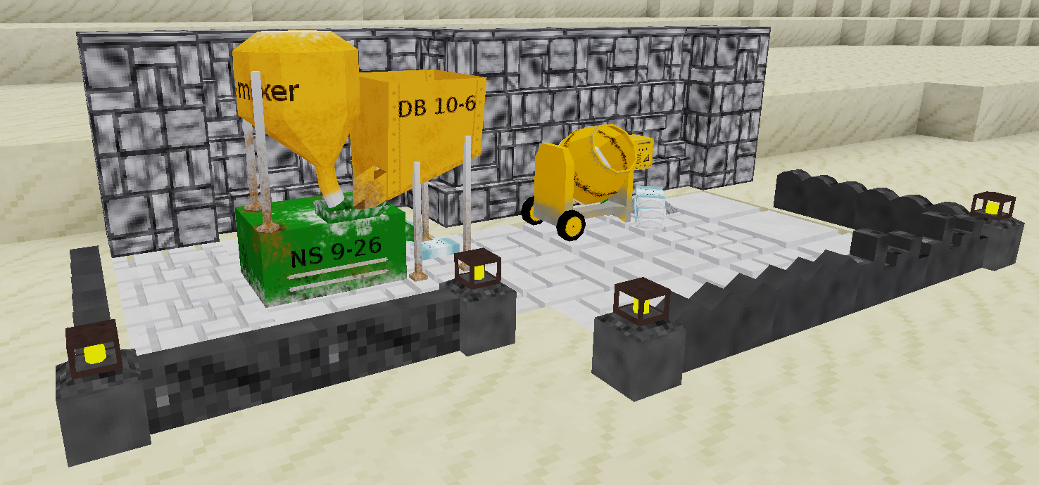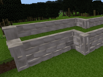 This mod includes two machines, one for making concrete and another for turning concrete into decorative walls nodes. There are three styles of walls along with some decorative column toppers and patio blocks.