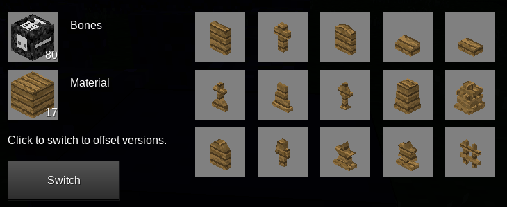 If you've ever wanted to honor a fallen friend, or just create a neat cemetery this is the mod for you. There are only two craft recipes, one for the tombstone creator, and one for the chisel. All of the stones are made in the machine with a bones node or tool and the material of your choice.
