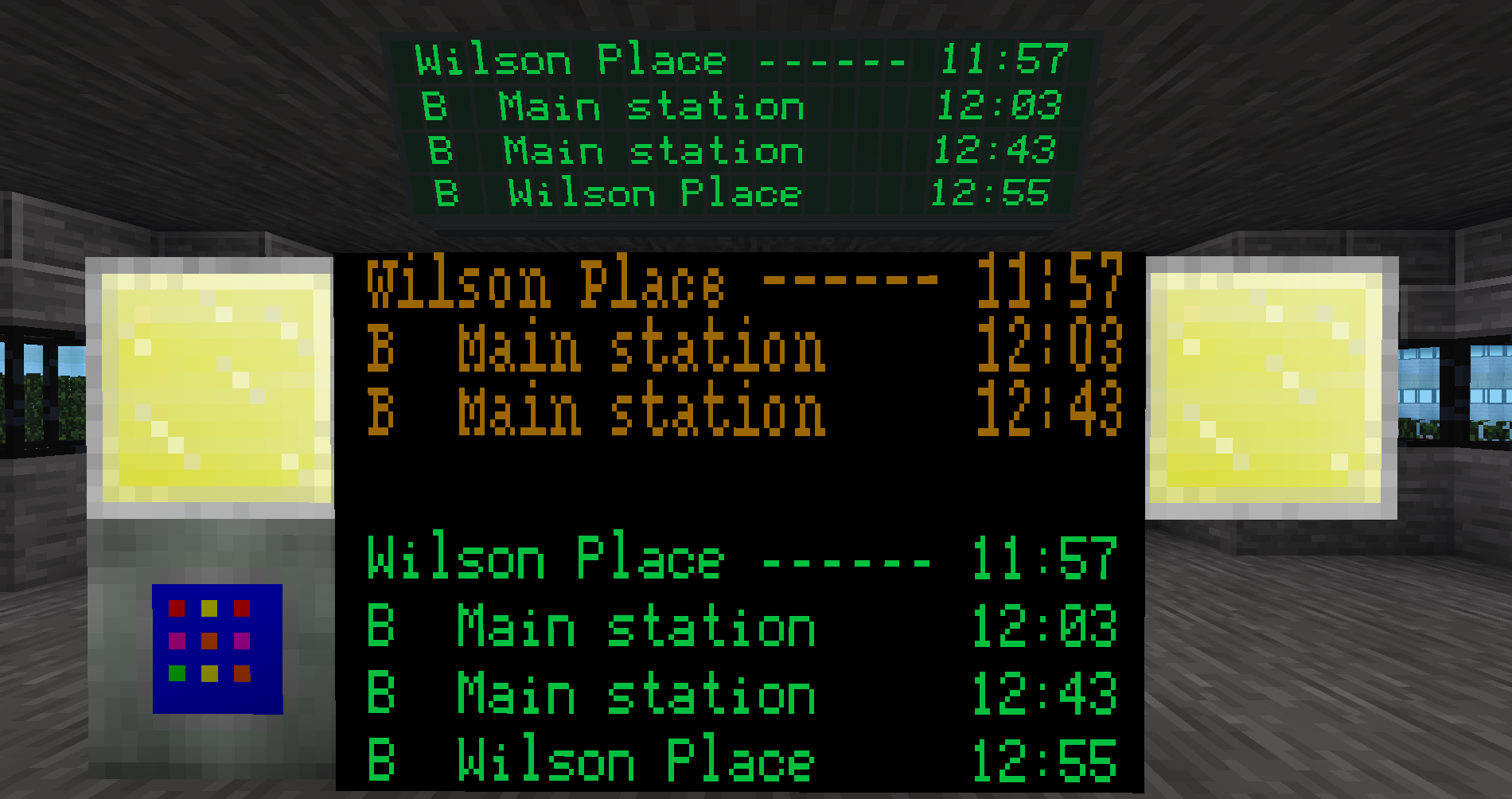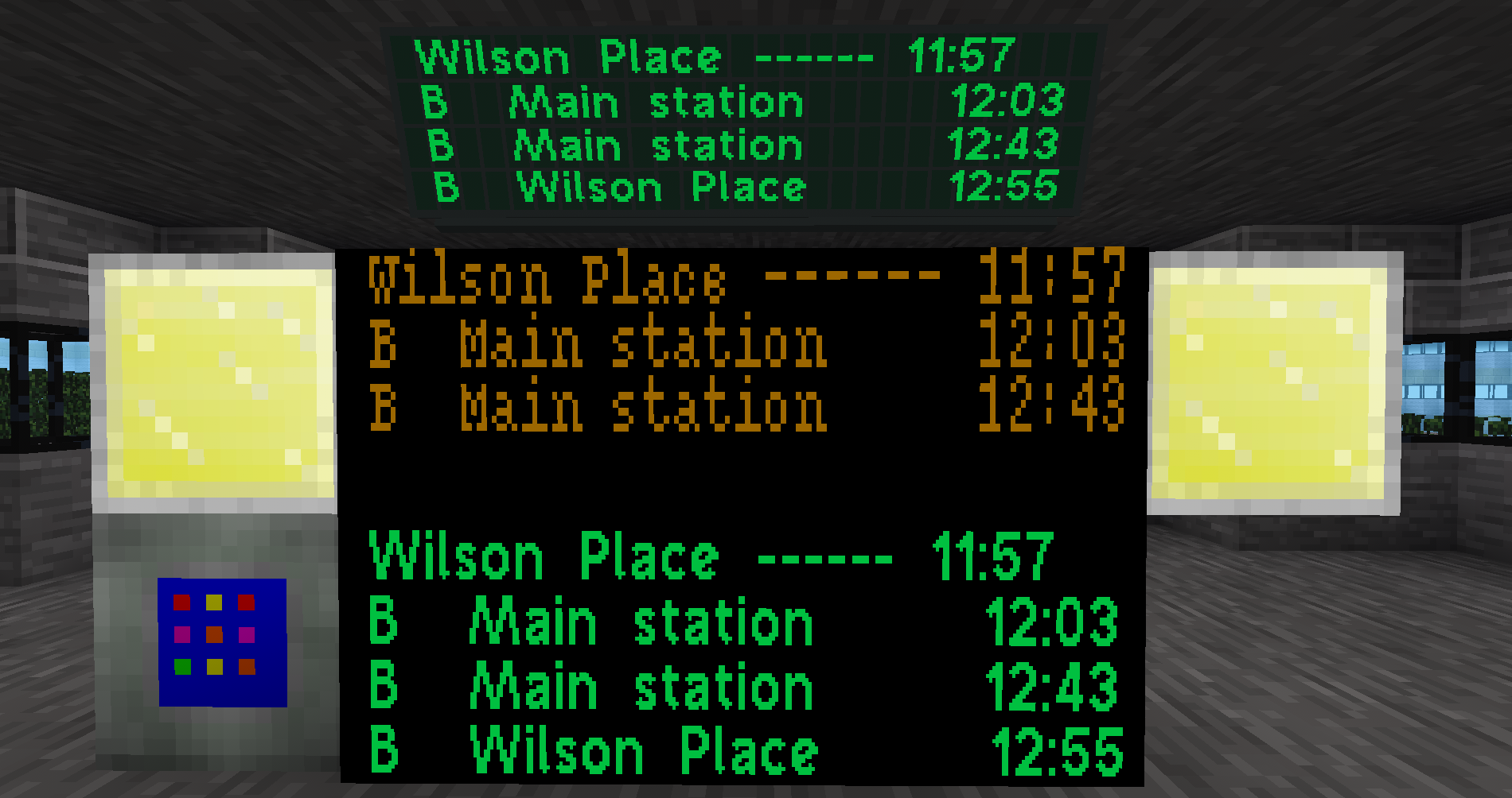 This mod provides a flat green display, and two "hanging" displays (a green one and an orange one). They glow in the dark.