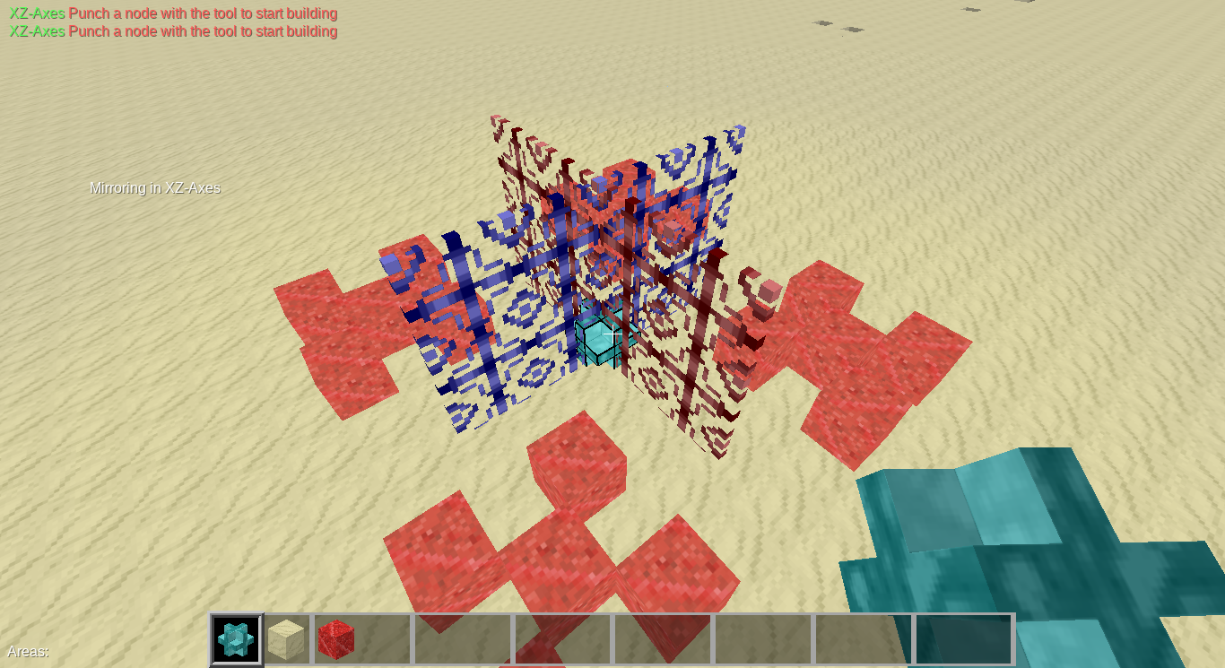 - Left Click will dig the node you are pointing at, and also dig the node in the mirrored positions for each axis.