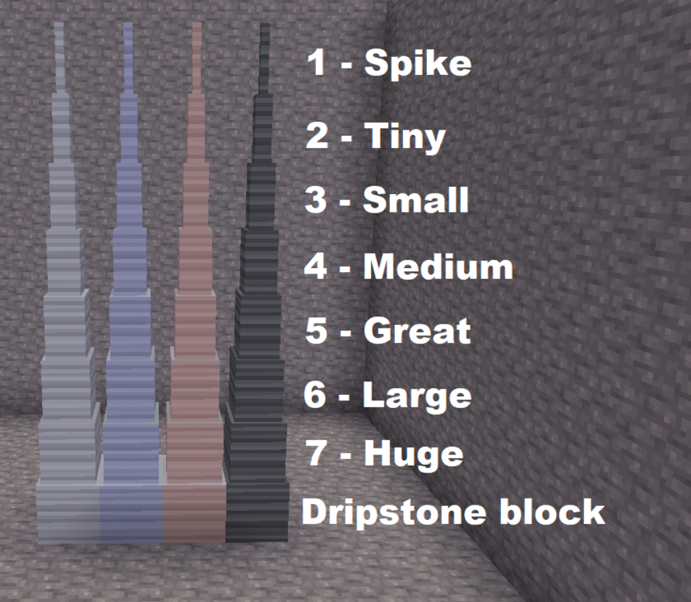 The mod exposes 4 types of dripstone, which change based on the liquids above them. Dripstone can also be used to create a lava or water farm.