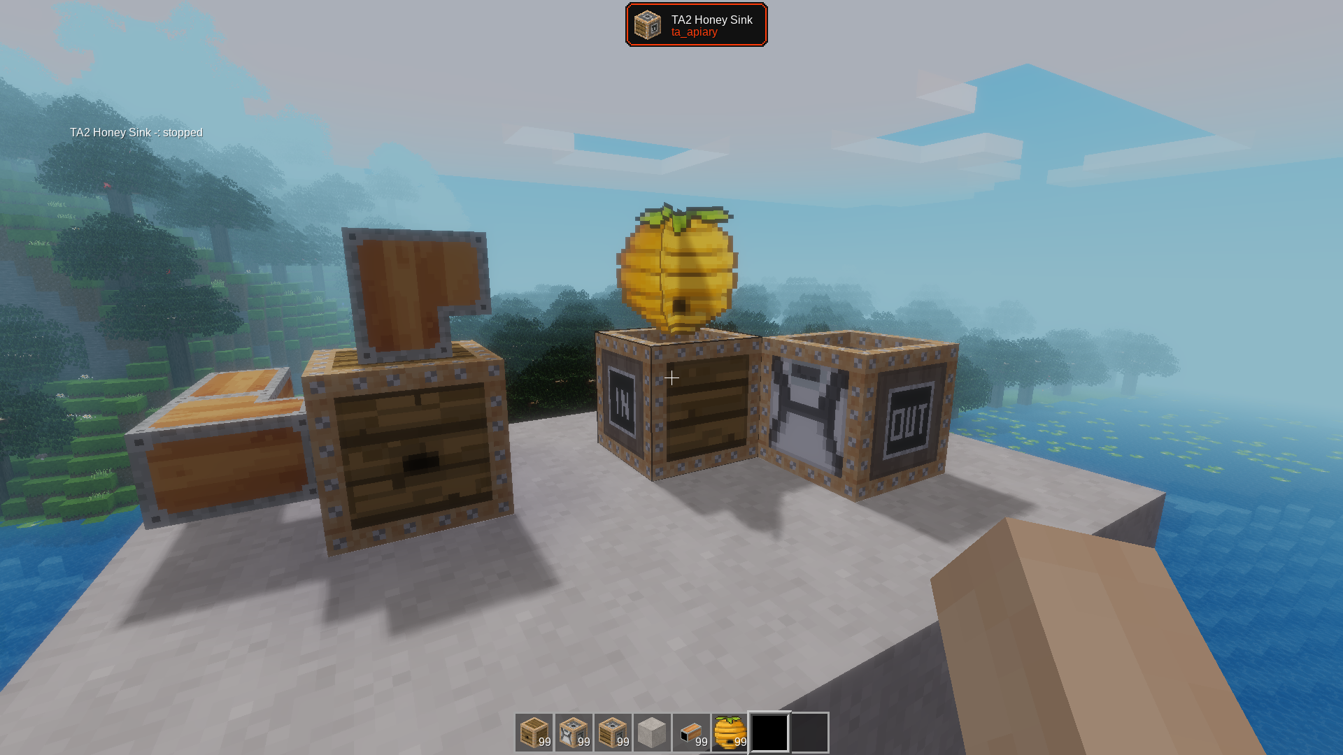 Honey Sink is a machine to sink honey from beehive of the Mobs Animal mod. Has TA2, TA3 and TA4 versions. TA3 and TA4 versions can randomly increase honey production in addition to sinking. It uses some TA energy to work and can be automated with tubes and pushers.