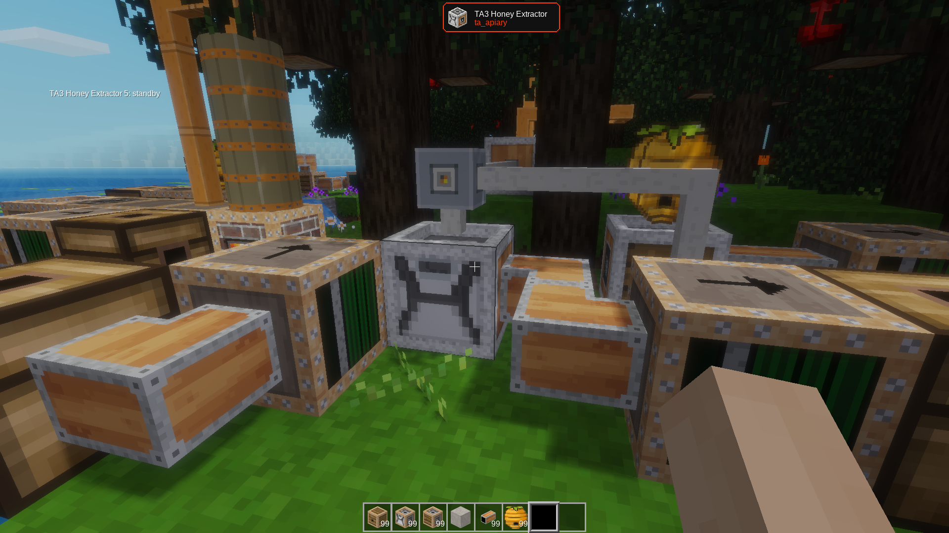 TA Apiary is a beehive for bees from the Bees mod. This apiary can be automated with TA tubes and pushers. You'll probably want to use TA4 pushers to pull only full frames and not empty frames nor queen bees.