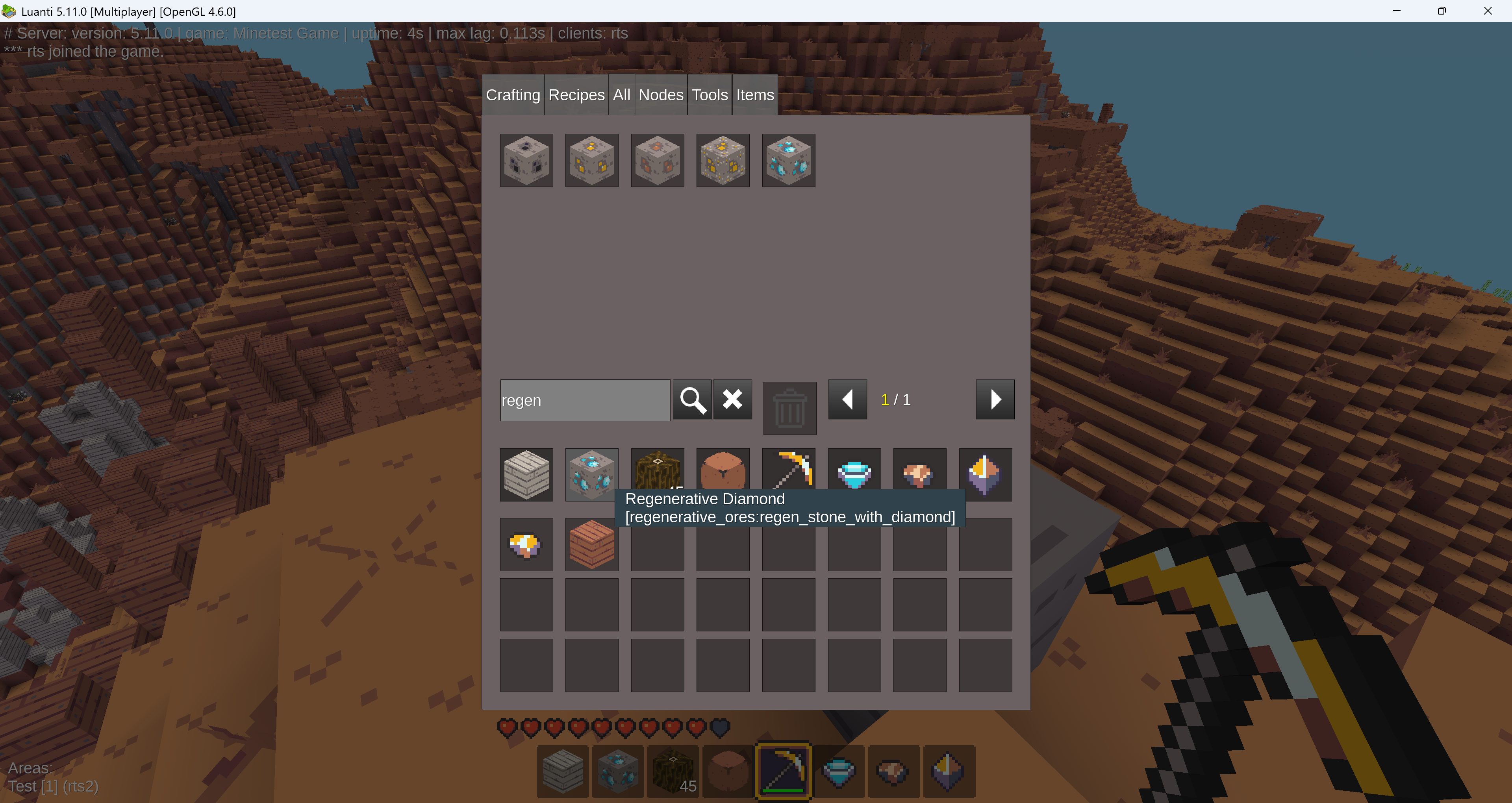 These ores can be dug and will respawn after a certain length of time. They have two forms: The ore form, and the stone form. When the ore form is placed, it will wait for the player to dig it, then will give the user the item, or, in the case of a full inventory, will be placed on top of the ore. When the ore form is dug, the stone form is placed in its place, which, if this stone form is inside of a protected area, will not be able to be dug. When the stone form is placed, a timer sets (greater for rarer ores) that, when it runs out, replenishes the ore.