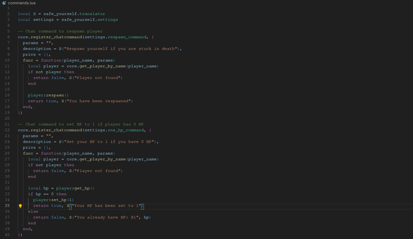 /safe_yourself_respawn- Respawn yourself if stuck in death/safe_yourself_one_hp- Set your HP to 1 if you have 0 HP