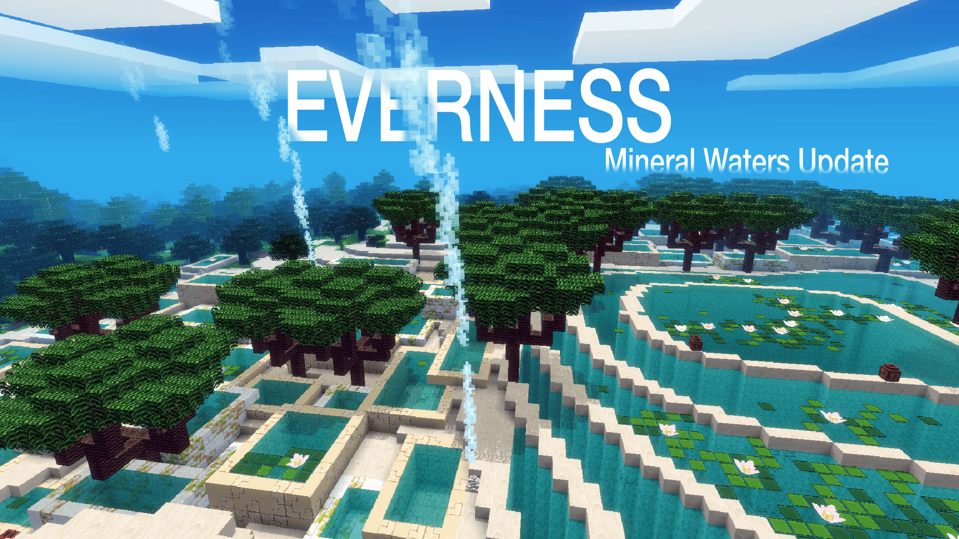 Everness is a mapgen, which aims to provide an endless array of beautiful biomes from the surface lands to the caverns with custom-painted textures. It creates both a sense of discovery and of danger when one lands in the wrong biome. It also adds structures, dungeons with loot chests, and custom skyboxes based on the biome.