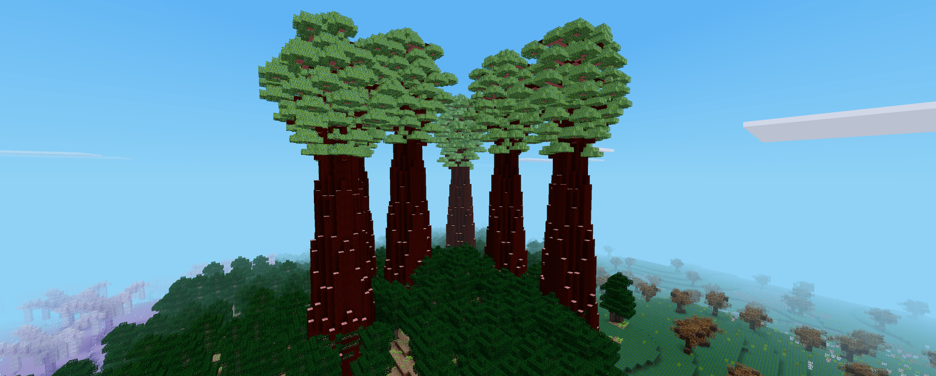 I add this mod to just about every Luanti game I start, and I love the blocks and biomes it adds! The environments and worldgen are beautiful, and provide so many more things to build with and make awesome builds with. Probably my favorites are the Crystal Forest biome (I like the translucent purple trunks that the trees make), the Seqoia biome (love those trees, and they have pink wood!), and the spooky halloween themed Nether biome (not sure what it's called, but it adds eyeball plants and skull lights).