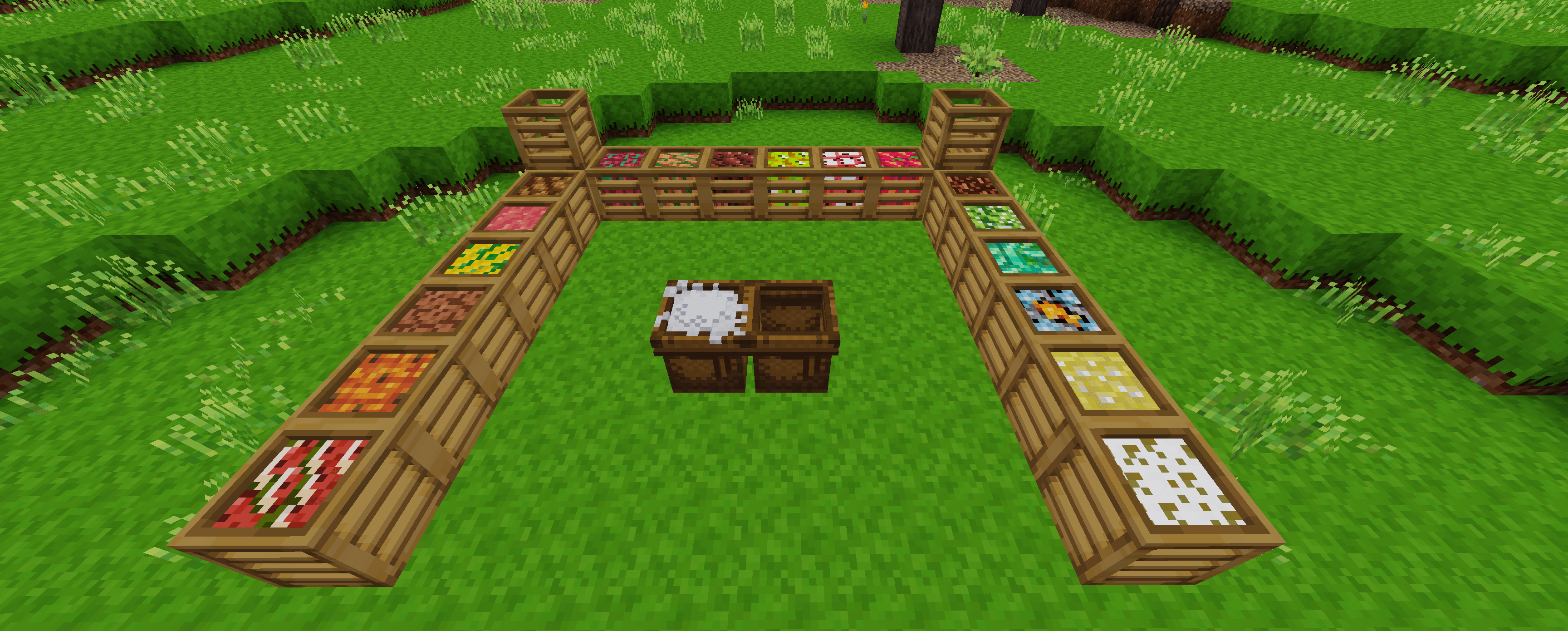 - block farming, instead of food items, blocks can be harvested/crafted and used for building or decoration