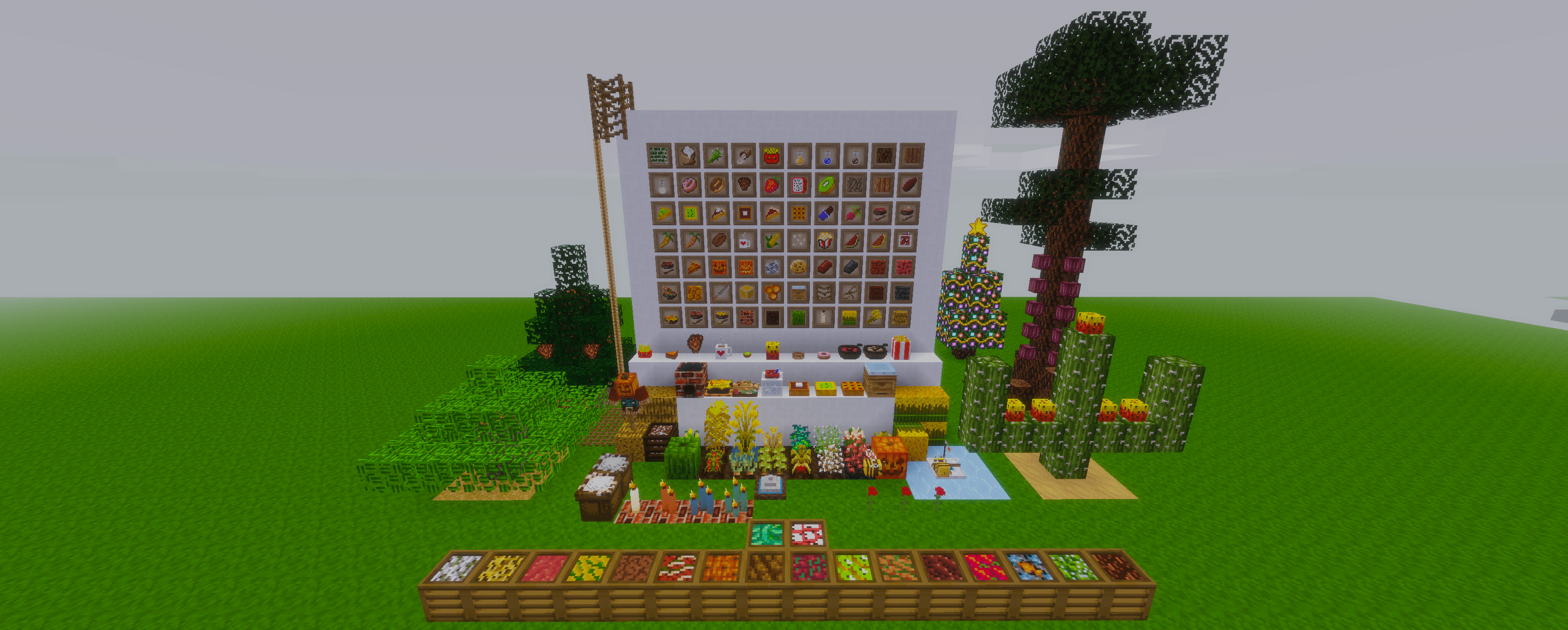 El arte de este mod me gusta mucho aunque añade varias cosas ya echas en minetest como cotton, pillow, cactus sin eliminar antes eso de minetest. Solo es util si lo modificas primero o para usarlo en un nuevo juego, no como un mod para minetest. El mejor mod de cultivos, granjas, comida :D Edit: Aunque si elimina cosas de Minetest en ese caso no recomendaria usar este mod como el cactus por ejemplo.