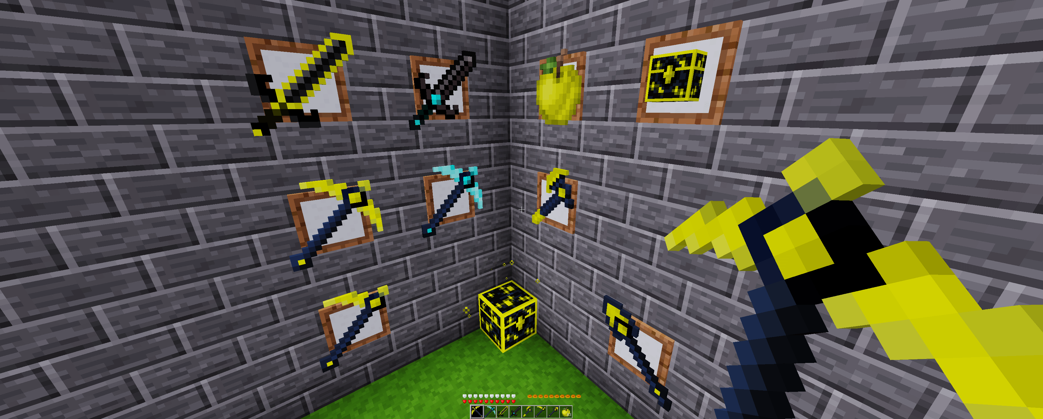 This chest holds the same inventory for a player. You can store items in this chest and the same items will be available in different obsidianmese chest on a different place in the world. Good for mining while carrying this chest - place the chest and store you items in it to free up some inventory space for more mining. All stored items will be available in the same chest when you get back home.