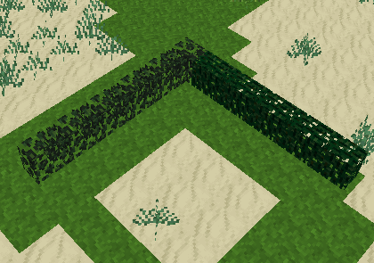 This mod adds hedges that automatically connect to each other when placed and that can be crafted from leaves. Hedges connect both horizontally and vertically, making it possible to build hedge mazes a player cannot jump over.