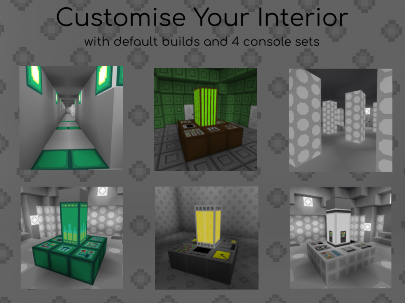 - TARDISes: Simply craft a tardis, place it on the ground, and walk through the door. You'll have to craft seperate console units to control and fly your tardis.