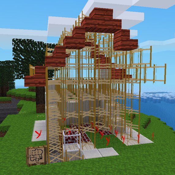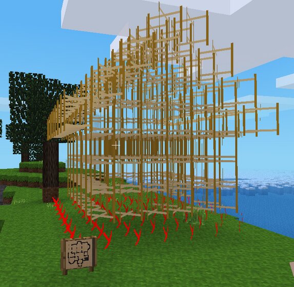 - if you don't have the creative priv, but have the blocks used for the house in your inventory, just right-click on the scaffolding nodes that are placed