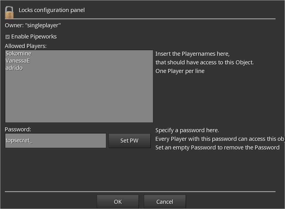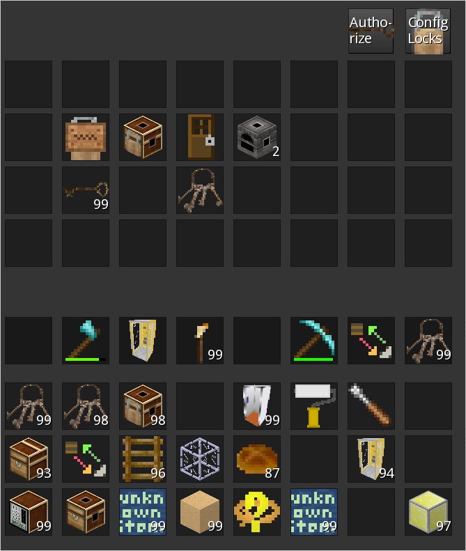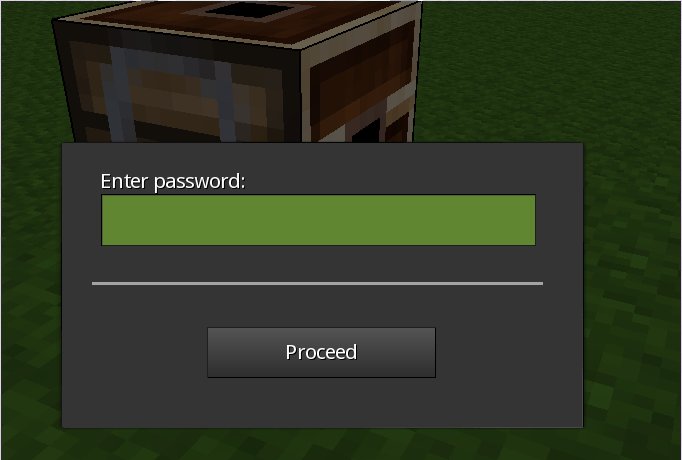 Grant access to chests, doors, furnaces and signs from this mod by either entering the player name who is allowed to access the shared object or by setting a password. Anyone who knows the password and has a general key(chain) can then access your object after entering the correct password.