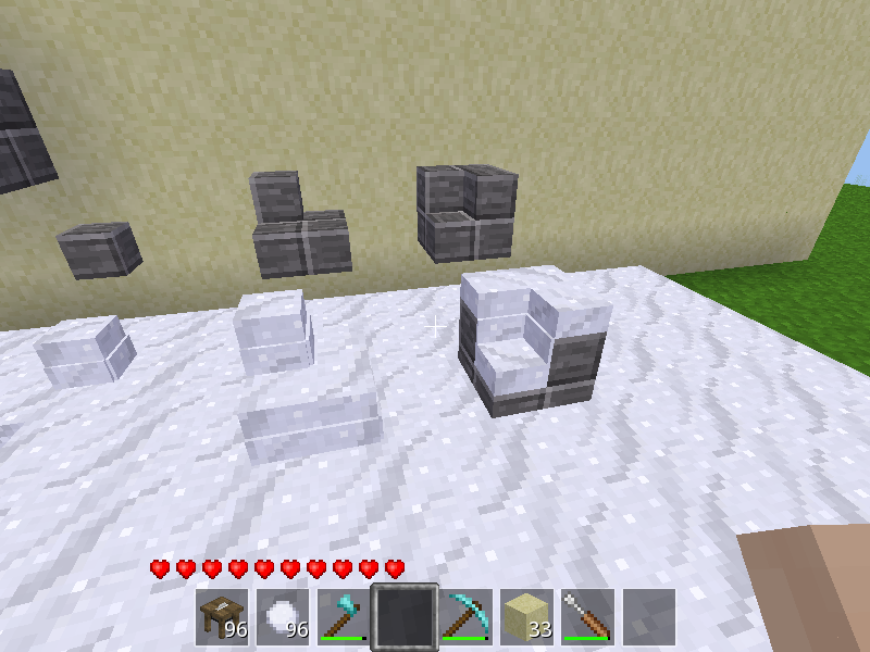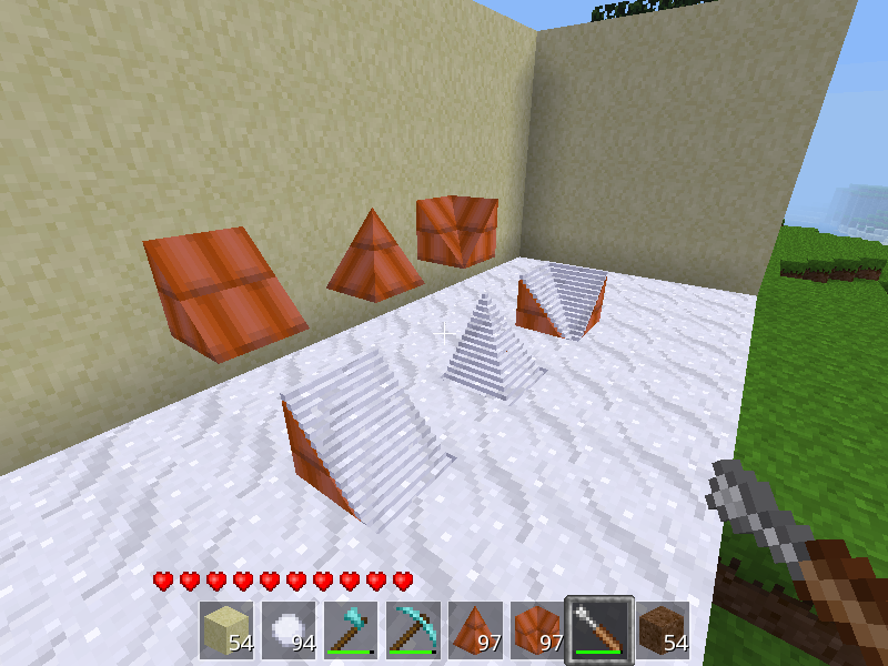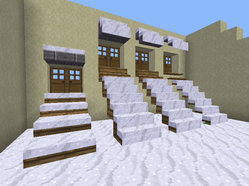 Ever got annoyed by that snow levitating halfway in the air above a stair or a slab? Ever wanted to get your roof covered with snow? Or just wanted to place some kind of cushin (wool) on your benches (stairs)? Or just want to play with a snow cannon (auto-shooting)? Then moresnow might be something for you. It is not a perfect solution, but it is a huge improvement.