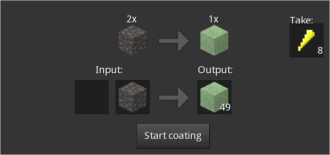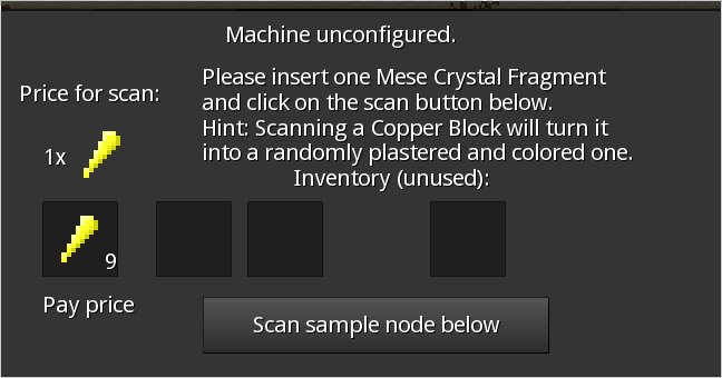 This mod adds only four lightweight new nodes: One machine and three blocks that can be covered with colored plaster. The textures for the plaster are those of clay, coral and tin block from default. The colors come from VanessaEs unifieddyes palette (unifieddyes is not required).
