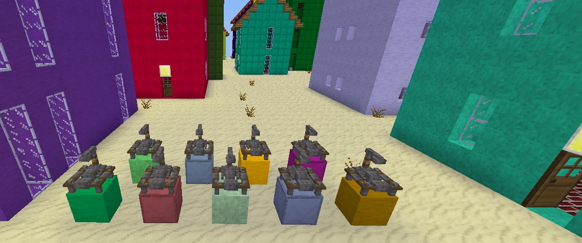 Colored blocks can be created with a special machine that can either create a random color or duplicate an existing color and put it on further blocks so that you can build something with it.