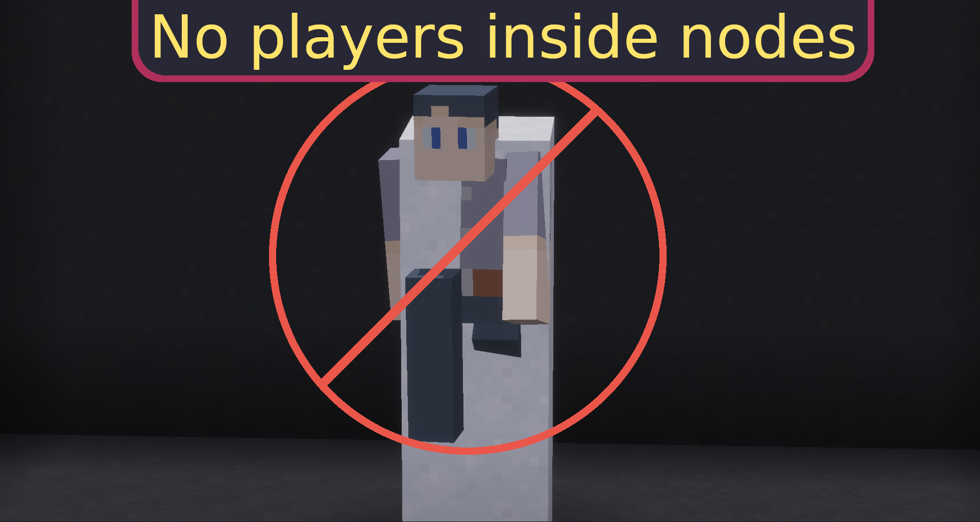 If a player is found to be inside a walkable node, they are shot out of it using math.