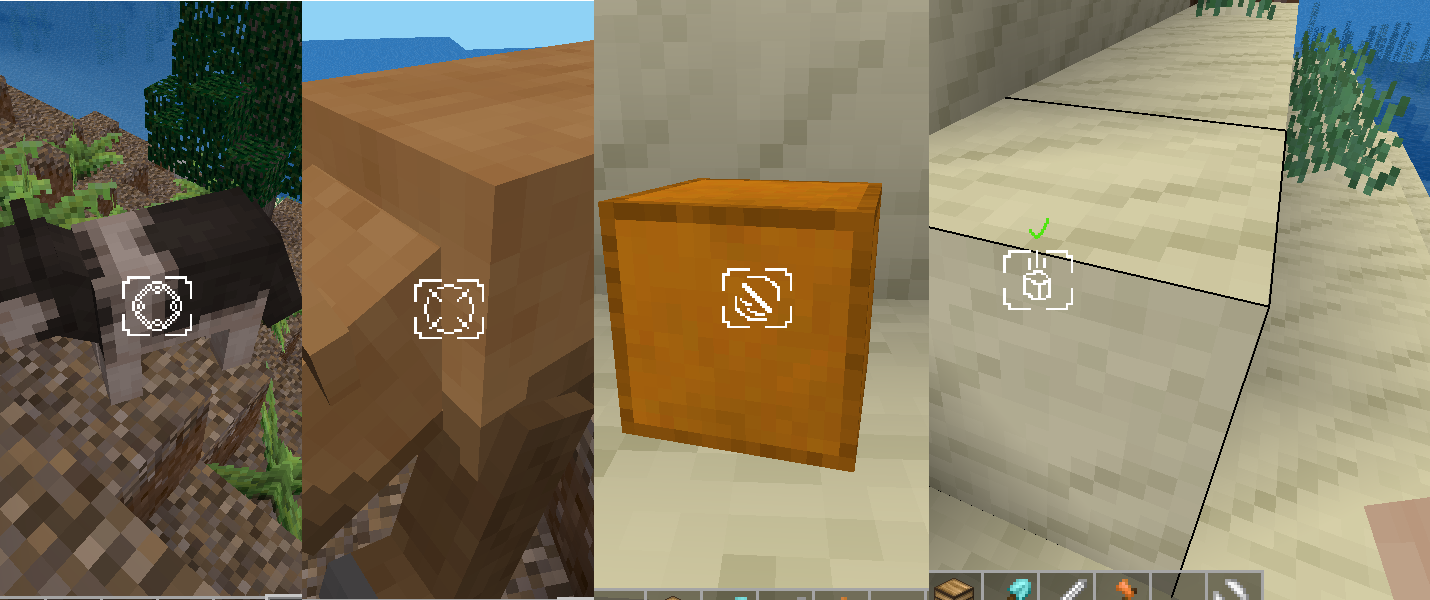 If held item has a tool_capabilities with a groupcaps (basically most tools including the hand), and if pointing at a node with groups - it will show a checkmark or cross depending on whether or not your tool is adequate for the job