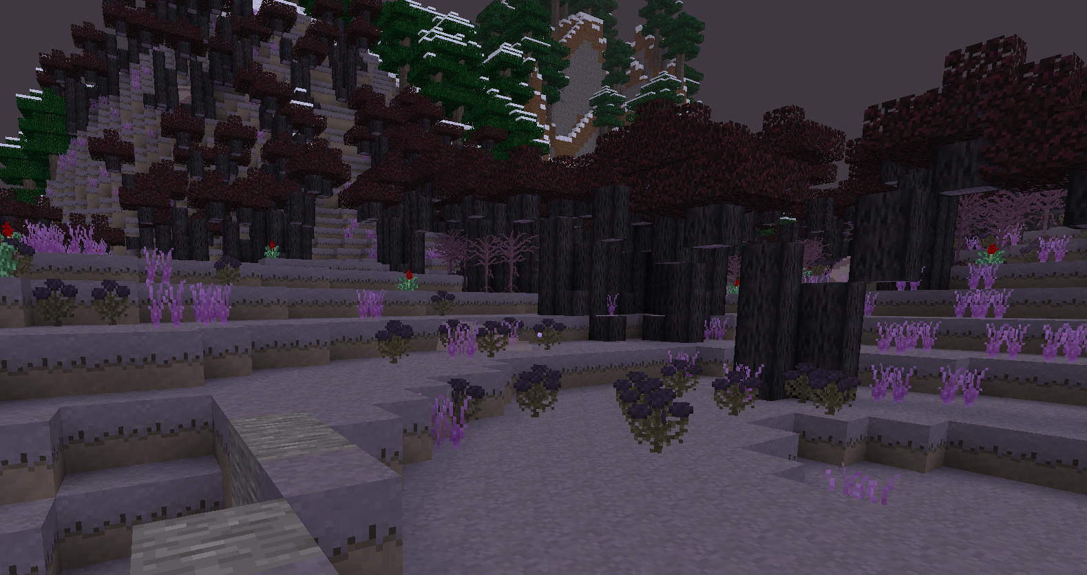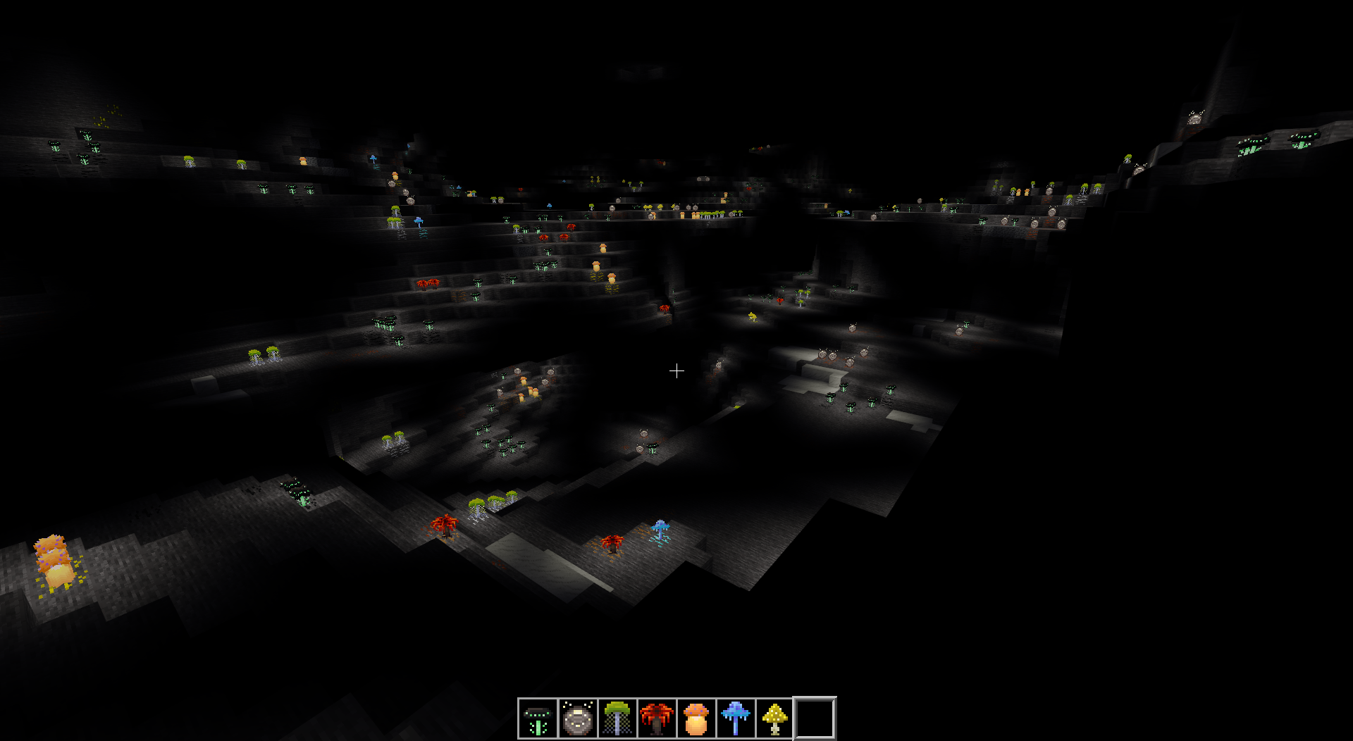Another mechanic utilizes the flowers mod, in where this mod's glowing rainforest mushrooms don't behave like the red or brown mushrooms. These 7 glowing mushrooms actually grow on the ores found deep below. A side effect of this that the underground will be gradually lit up by these bioluminescent fungi. (A heads up, they don't like direct sunlight and will despawn like the red and brown mushrooms.)