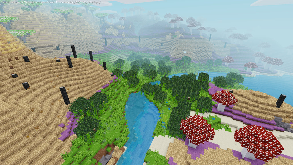sakurastays all the way up, covering lots of area.savannais the only biome recognizable, and every time I start up a world I start in a savanna.It's pretty fun