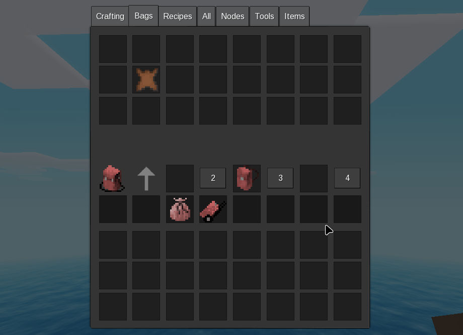 ver nice. I like how you implemented this as a separate tab, and ensured you have to empty the bags to be able to drop or swap the bags around. will this work with quick crafting / gridless crafting mods? like rubenwardy's [crafting] mod? for example, will his mod know the presense of items stored in your extra bags in order to give players ability to quick craft an item?
