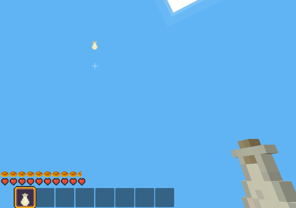 Potions: -speed (doubles speed for 60s) -jump (doubles jump height for 60s) -lunar (halves gravity for 60s) -nightvision (lets you see at night {doesnt work in caves} for 60s) -fortitude (increases hp to double for 60s) -slow healing (increases hp by 1 every 3s for 60s (1 is half of a heart) -water breathing (lets you breath underwater for 60s) -poison (decreases hp by 1 every 3s for 60s) -throwable versions of all of the above