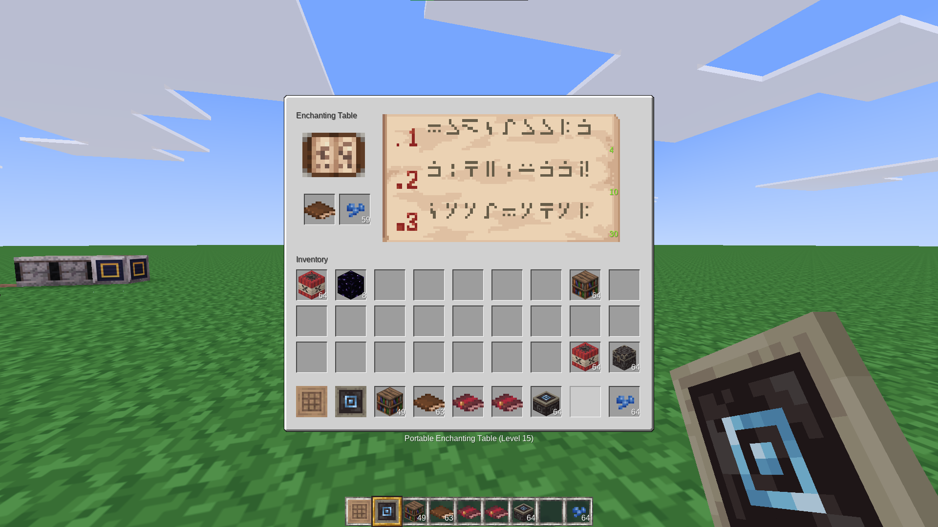 A mod that adds portable things to MineClone (crafting table, ender chest, enchanting table)