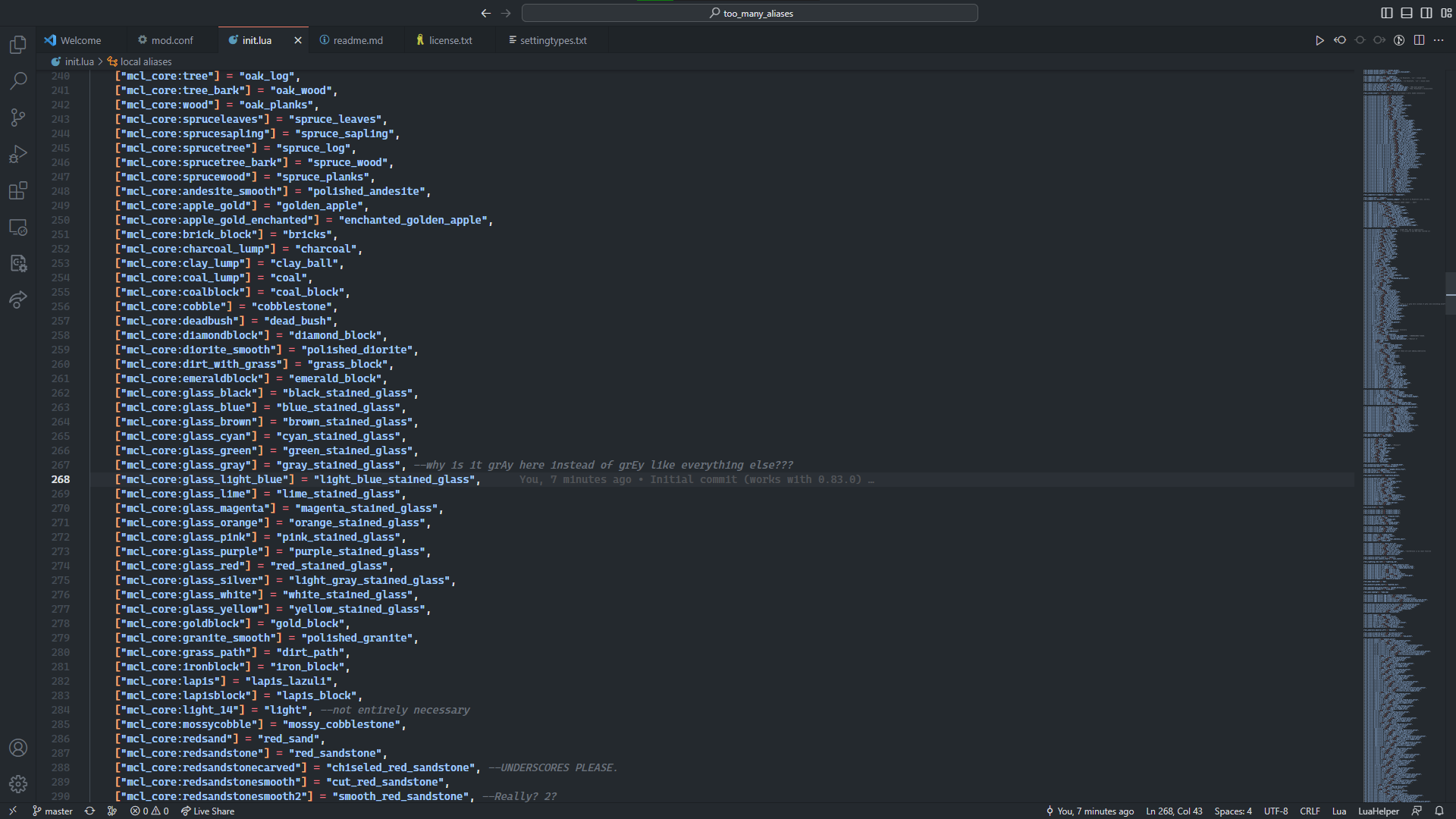 Registers aliases for all MineClone items (as of MineClone 2 0.83.0). All aliases follow MineCraft Java edition's item ID's. The aliases can have a custom prefix or none at all. The default prefix is "" (an empty string).