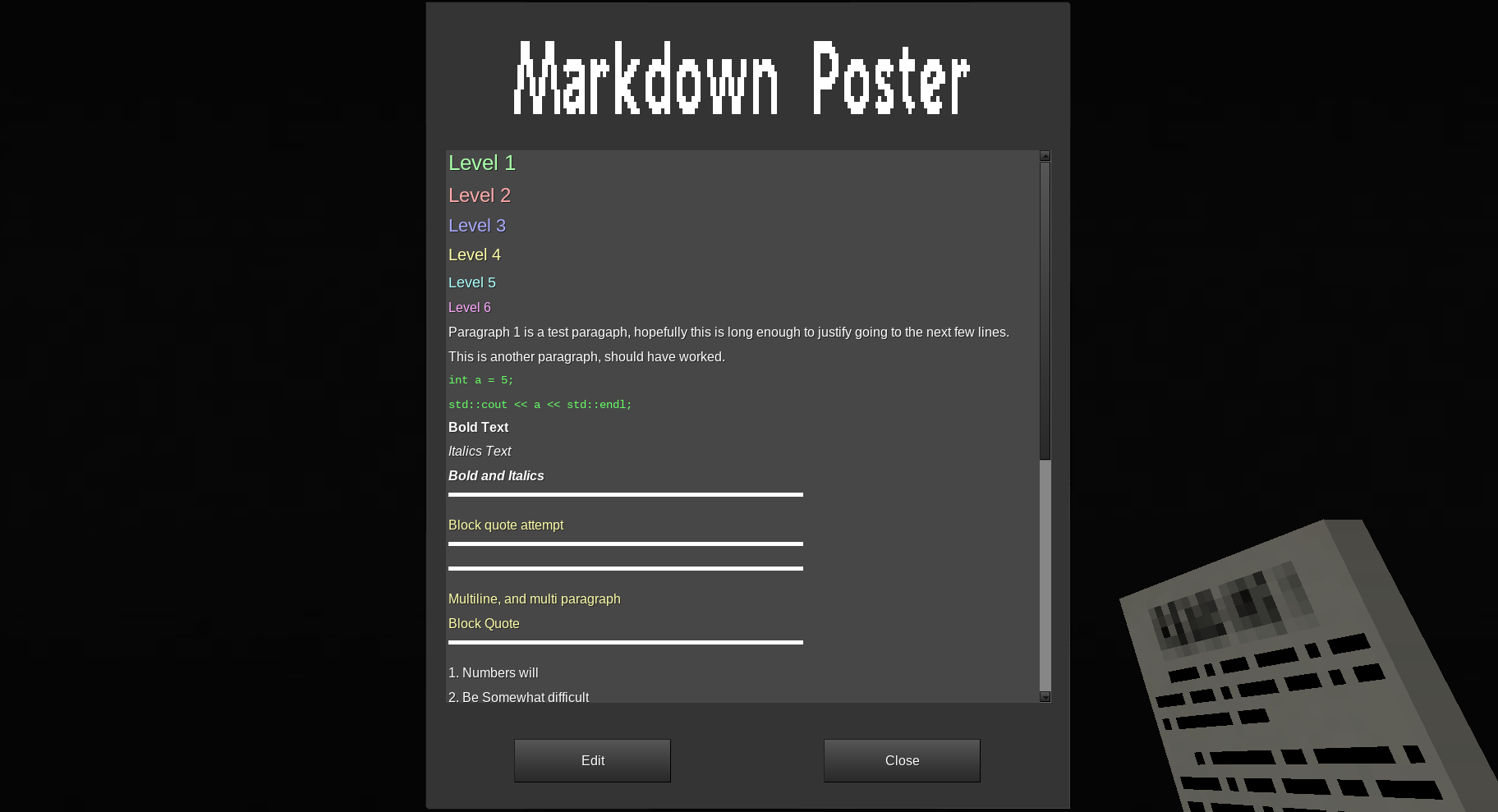 This mod adds a markdown-capable variant to the poster from display modpack.