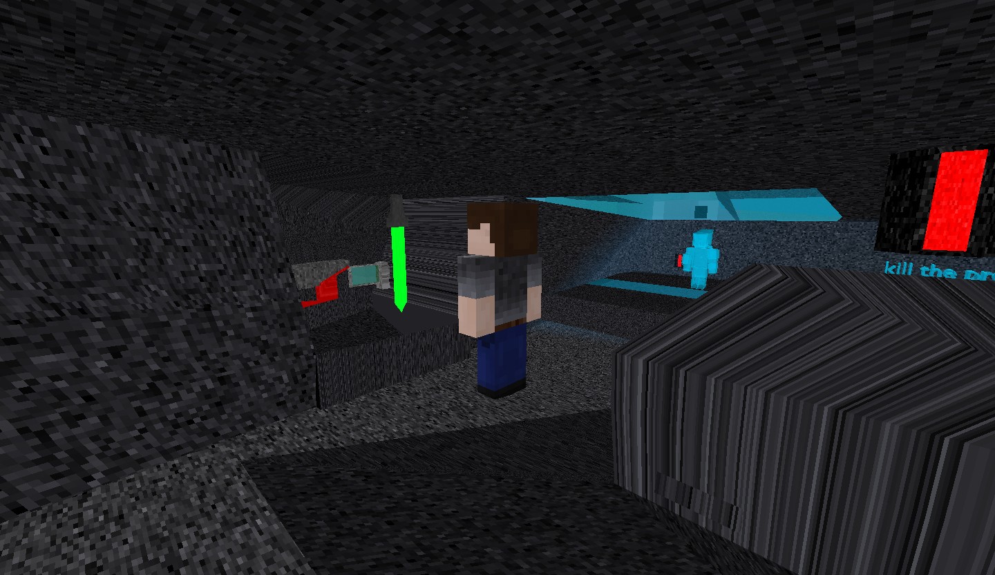 Then the game has a lot of bugs: The beast didn't even spawn in the final arena (and I didn't bother to check why). There are missing textures. You can dig through the ground and fall into the void (and the game doesn't reset you).