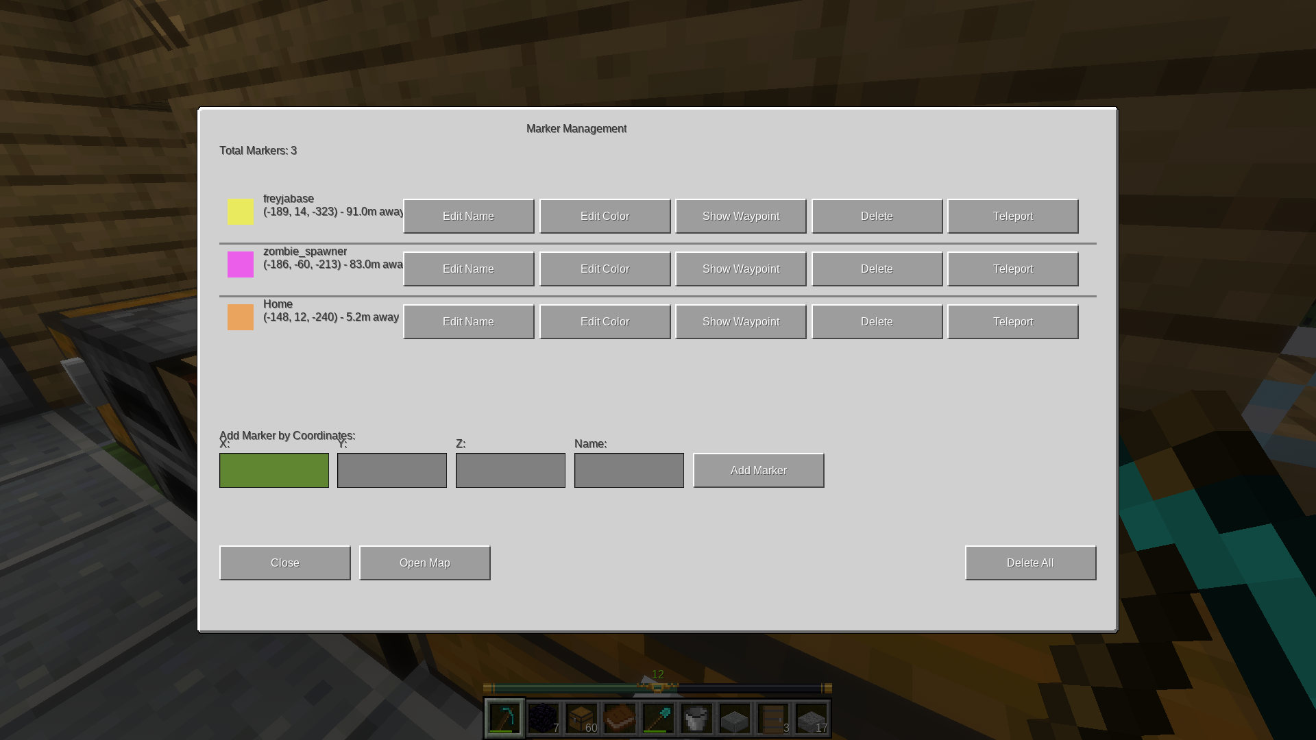 - Pressing "manage markers" button opens marker management gui.