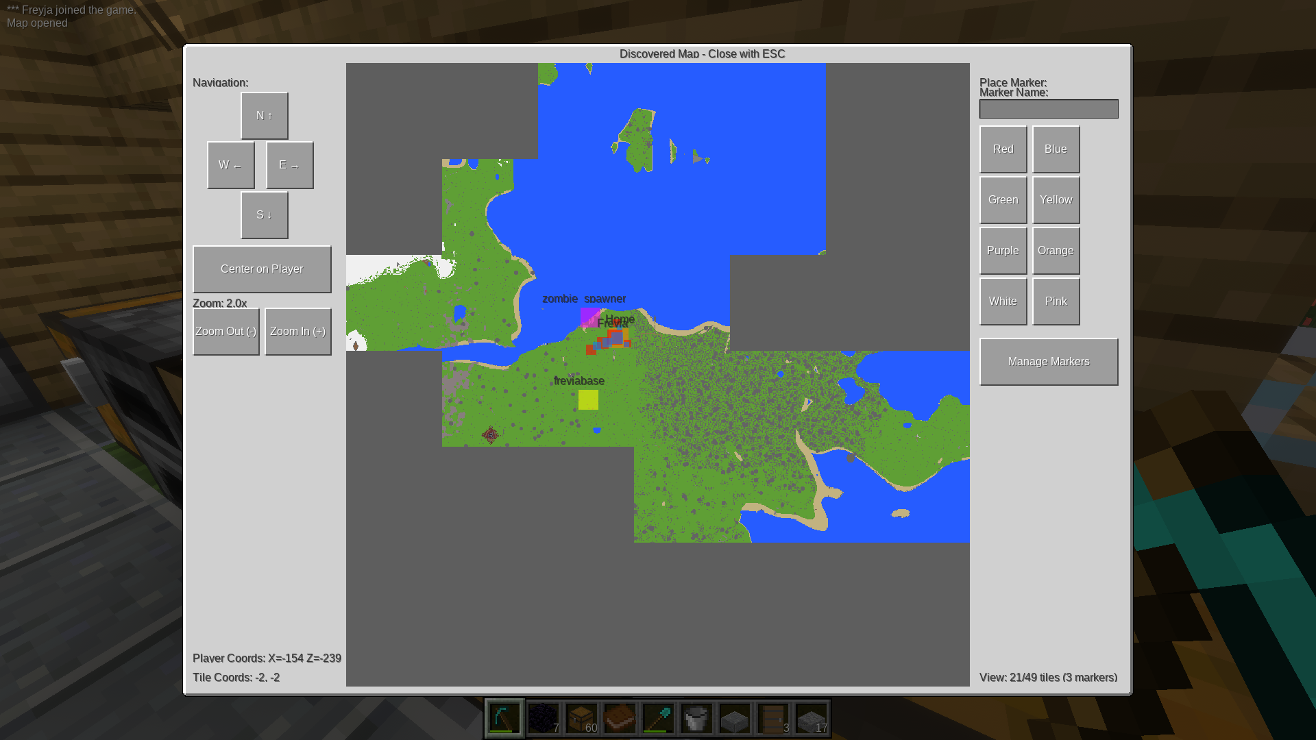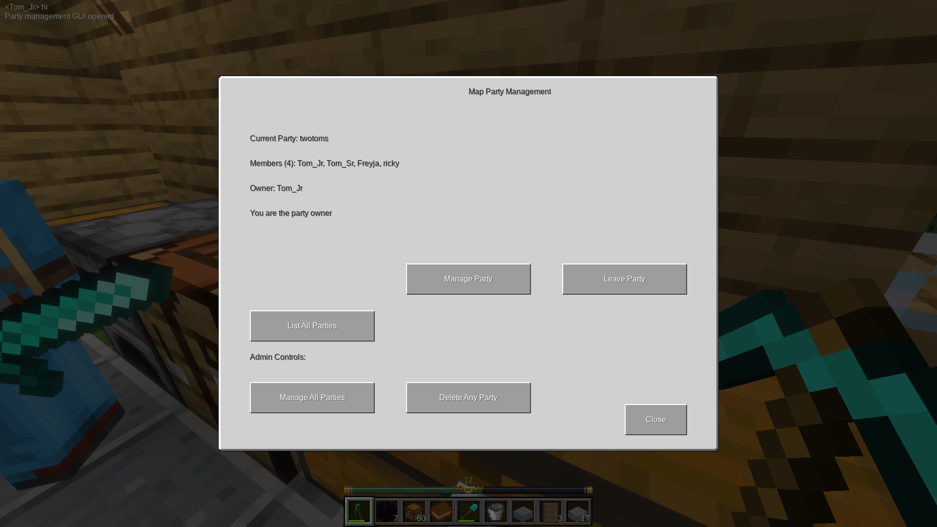 /mapparty <partyname> <player1> <player2> ....to automatically share discovered map tiles. and see other players position markers./partyguiwill open a gui to let you manage party. (Automatic Marker sharing on creation for mapparty members is a planned feature!)