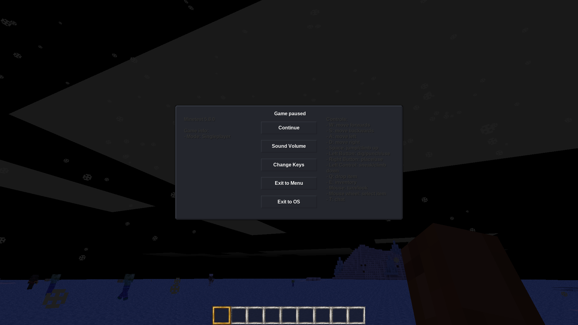 Warning: Some of the text may be difficult to read because, as far as I know, there is not a way to change the color of Minetest's default black text. Setting font_bold (font bold by default) in the advanced settings to true can help make it easier to read.