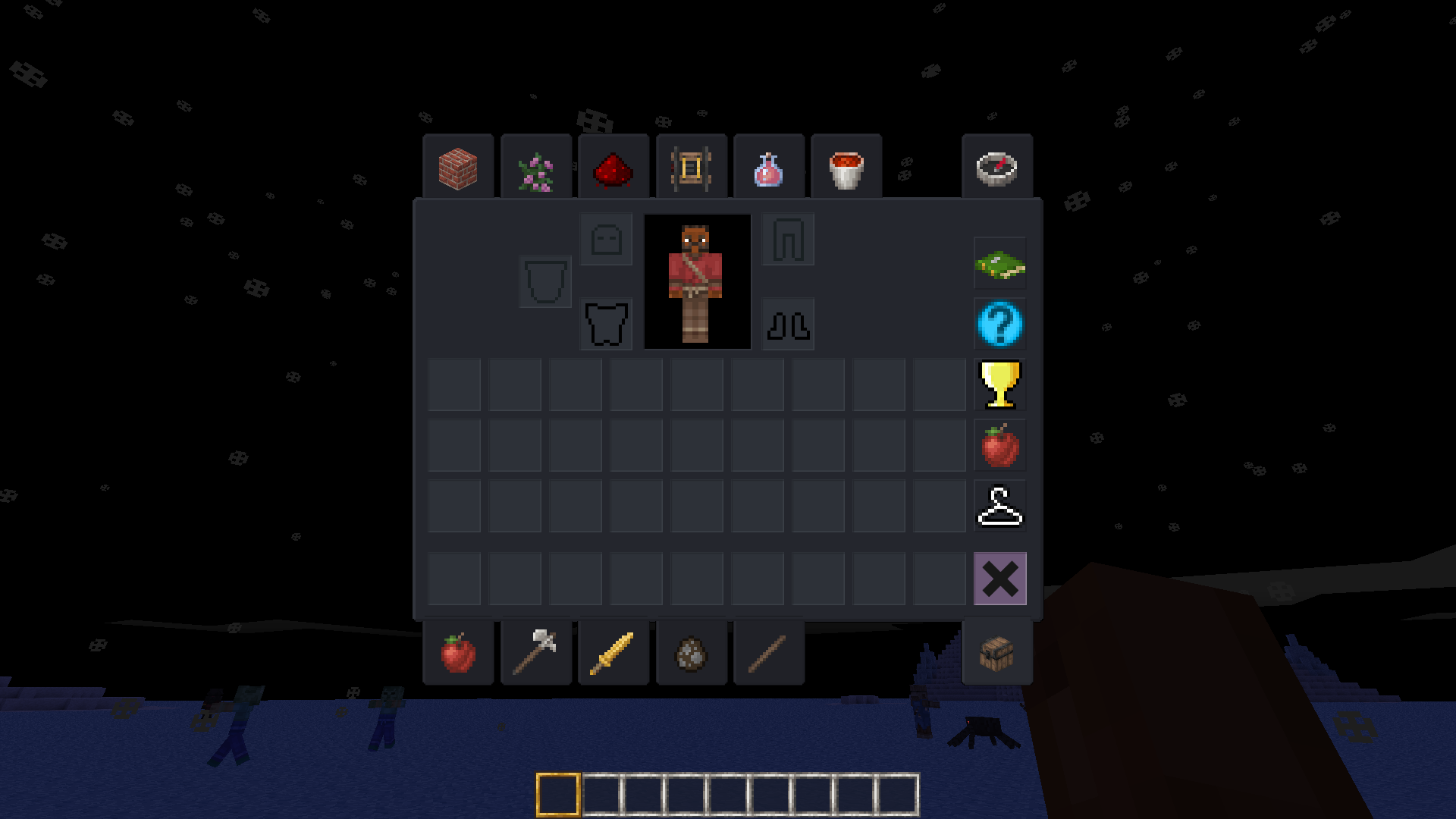 MineClone2 Dark Mode Inventory gives the game's inventory a darker, more eye-friendly look, ideal for late-night building sessions or just reducing screen glare. Visually, it blends well with the existing style of MineClone2. However, some text (especially in the pause menu) can become hard to read due to Luanti's default black font, and enabling bold text helps only a little. It's a nice visual tweak overall, but keep in mind that your eyes might thank you while the text doesn’t.