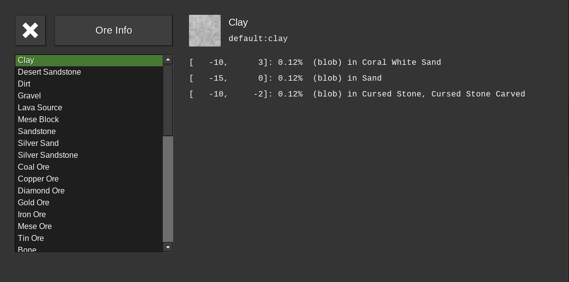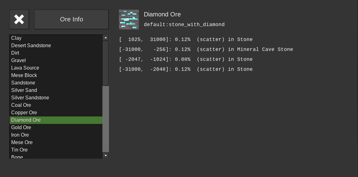 Ore Info v1.3.1 has been developed and tested on Luanti 5.13.0