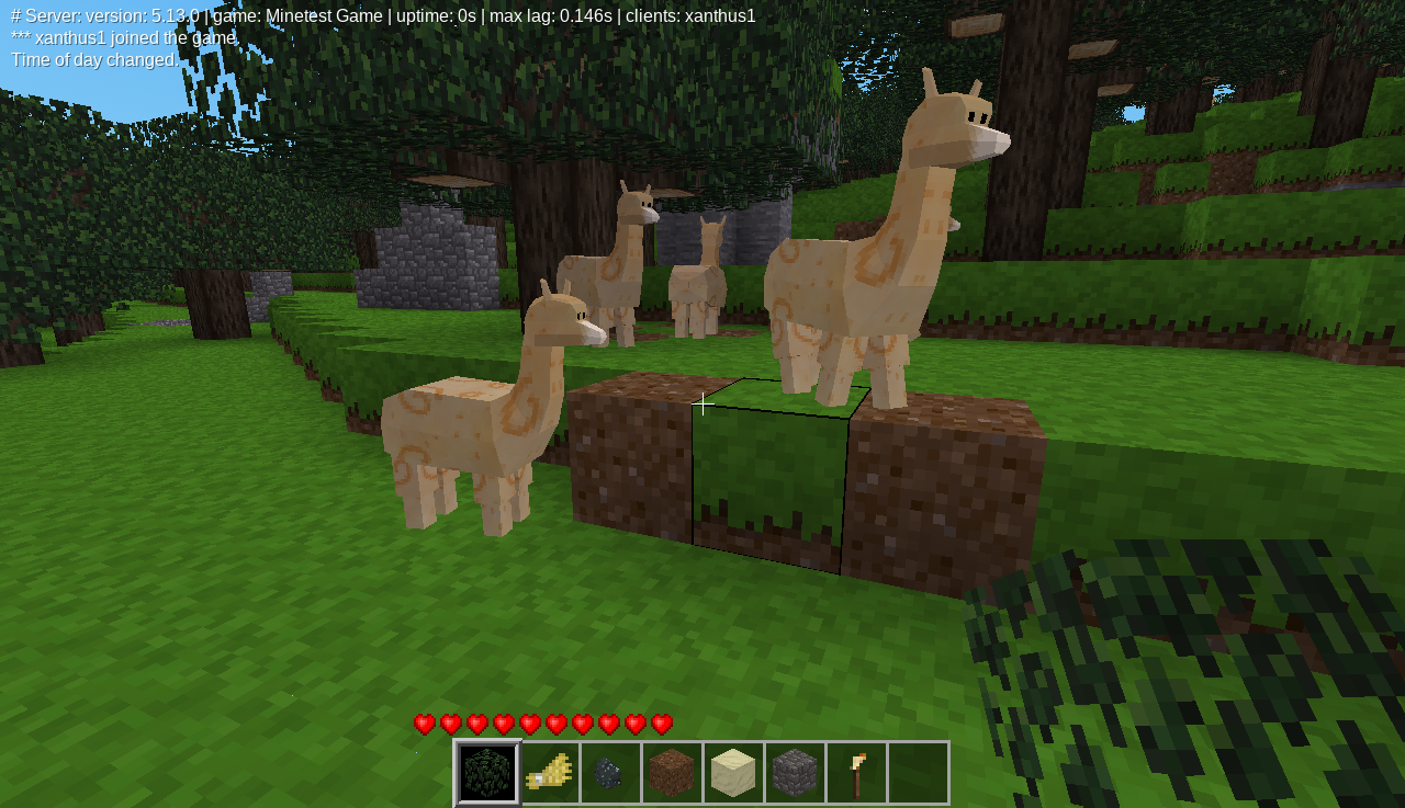 These mods were created over 48 hours for a Luanti game jam, in which attendees learned about the Luanti engine and related tools to create mods.