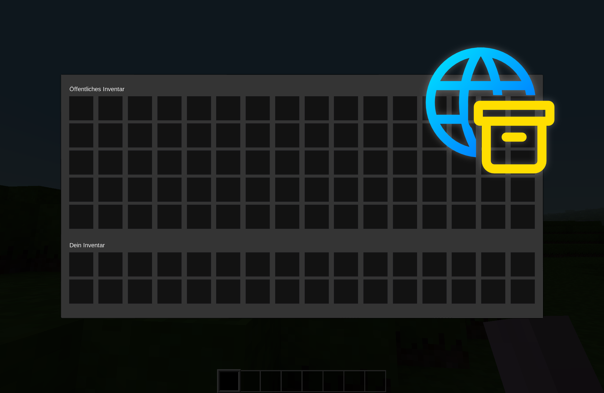 This mod adds a public inventory, which can be used by all players.