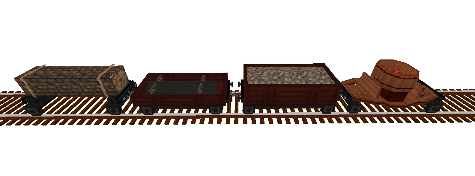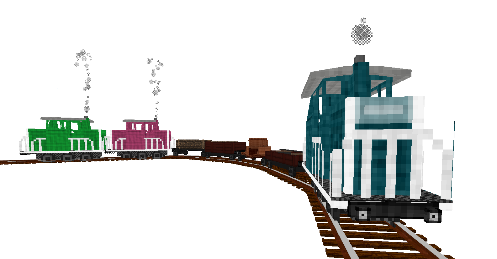 This freight train pack adds 4 more types of freight wagons to the game as well as a slower diesel locomotive. All of the wagons and the locomotive are recoverable - they drop themselves instead of steel. The recoverability and slow speed of the locomotive have earned it the nickname of "shunter".