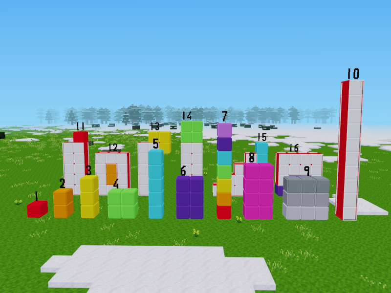 Get a "Numeracy Block" from the creative inventry and start placing them down in groups. Watch the blocks change appearance and the number above the blocks change.