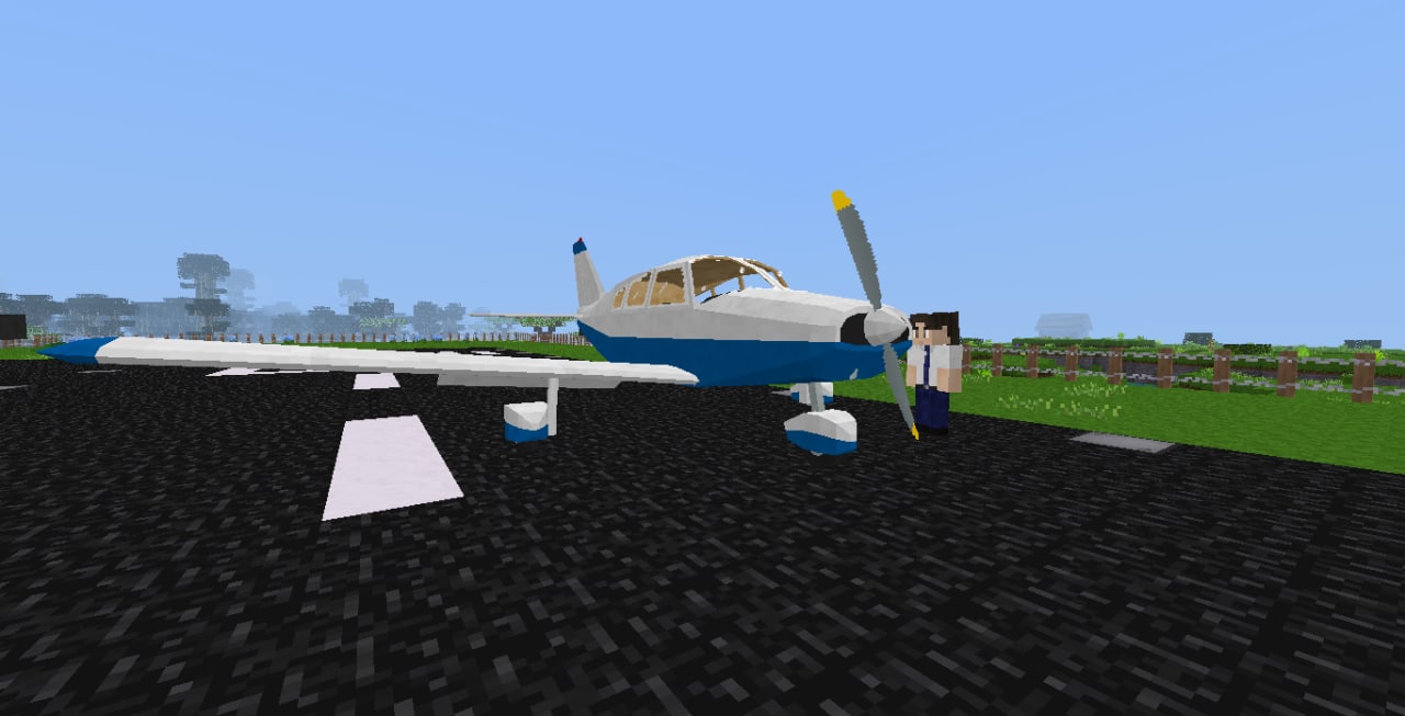 This is an implementarion to minetest of the Piper PA28. It is far from the real plane, as it is adapted to a minetest scale and behaviour. It was inspired on brazilian version of it, the EMB-712 Tupi. In order to fly, it is necessary to first supply the airplane with biofuel. Then with a bottle or gallon selected, punch it against the airplane. You can use 10 bottles them to fill the tank. See the fuel gauge on the airplane panel (right below, with a green F). To embark, click with the right button. While the machine is off, it is possible to move it using the sneak and jump keys (shift an space). W ans S controls the pitch (elevator). Right and Left (A and D) controls the yaw (rudder and ailerons).