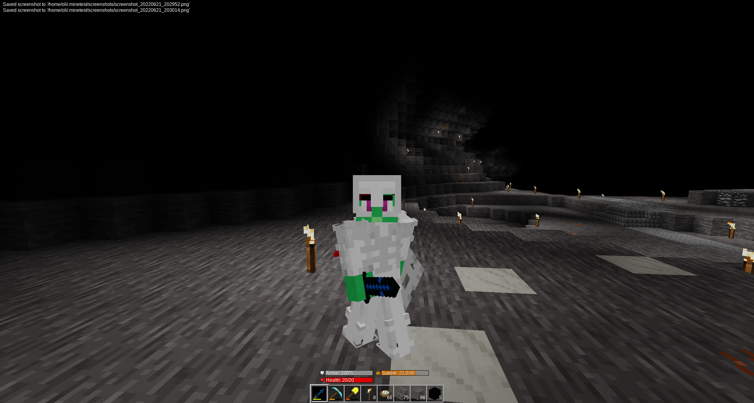 WhyNot?'s early game suffers heavily from the baggage Minetest Game brings with it: Heavy elements of RNG due to the biome-specific resources, numerous empty caves, and deep ores lacking interesting content between you and them. This leads to an awkward feeling where the game takes off quickly with its early guidance, then the pacing hits a wall as you slowly gather materials and try to find a cave that doesn't end immediately. After around 2 1/2 hours, I found myself still stuck with stone tools and without having made a meaningful step forward in progression since the 30 minute mark. Someone with more skill or dedication might've gotten to the good stuff, but frankly I found the early game too slow and boring to continue with.