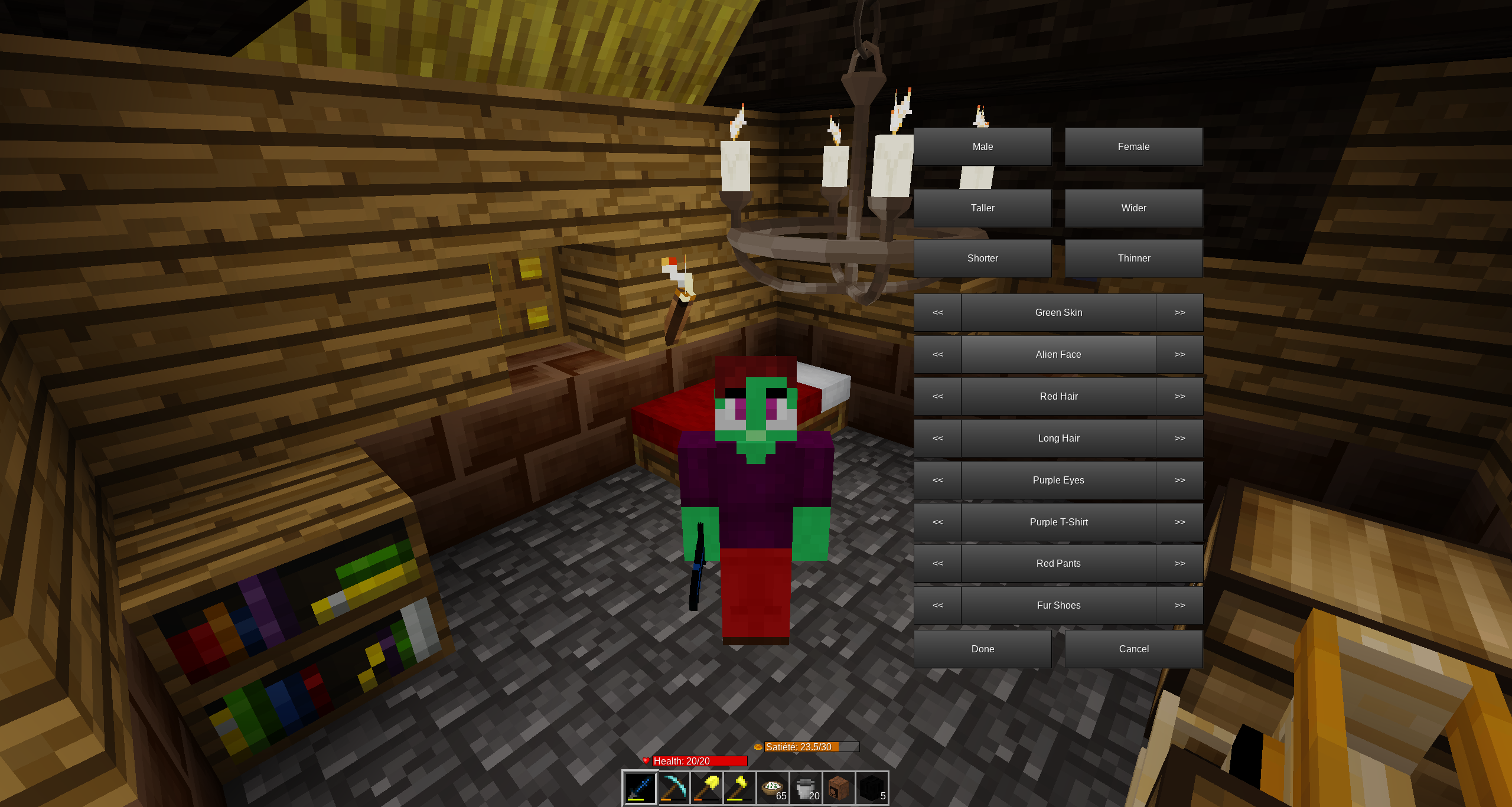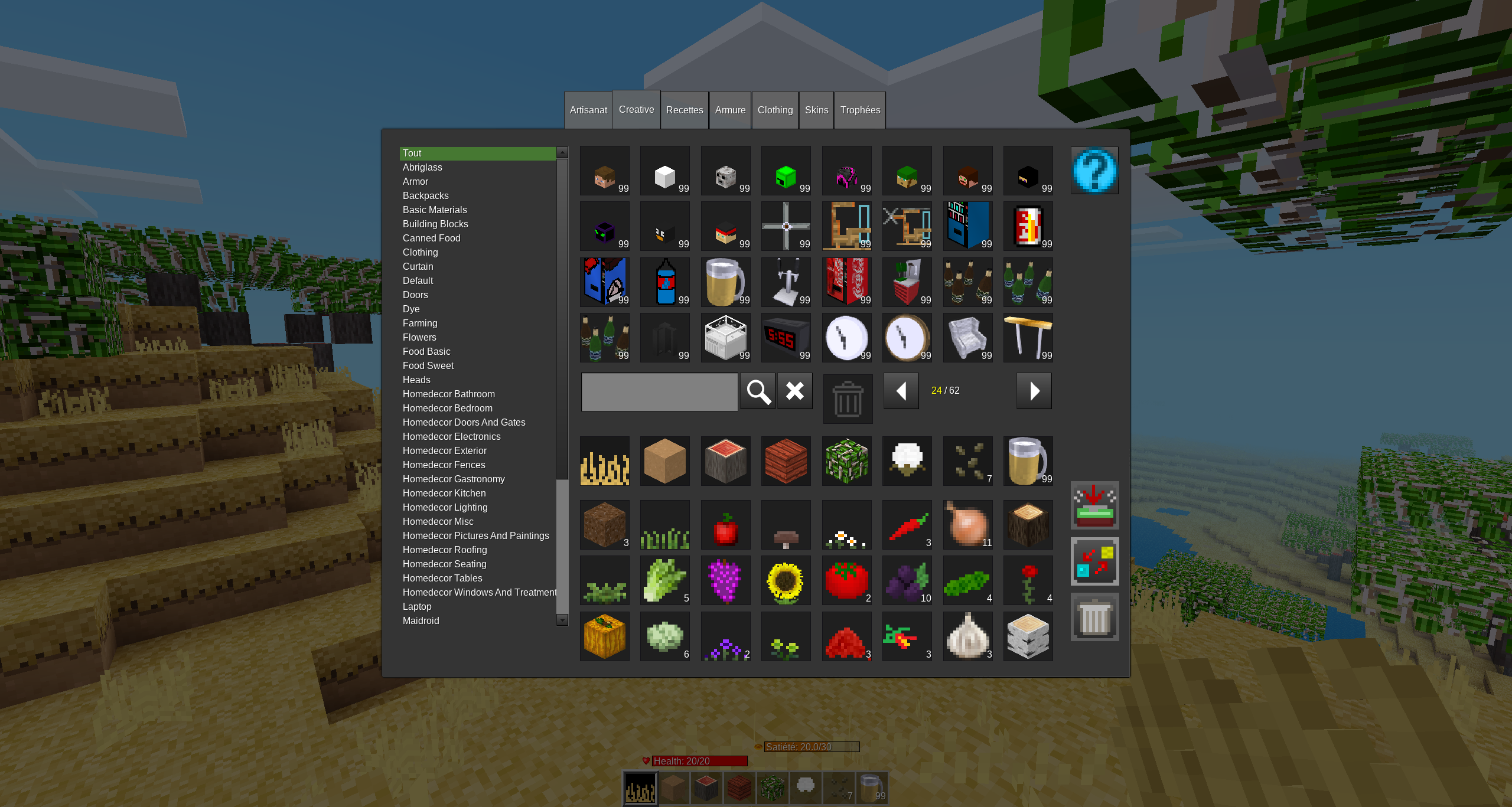 The WhyNot? game contains many craftable decorative items, furniture, and building materials from mods like like abriglass, homedecor, mydoors, myroofs, princess, ts_furniture, curtain, flower_pot, realchess, campfire, dice2, heads, mtg_plus, plasticbox, slats, and more!