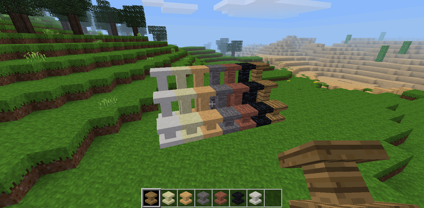 his mod adds pillars from various base nodes like cobblestone or stone bricks. The pillar automatically connects to all other pillars created by Pillars API mod.