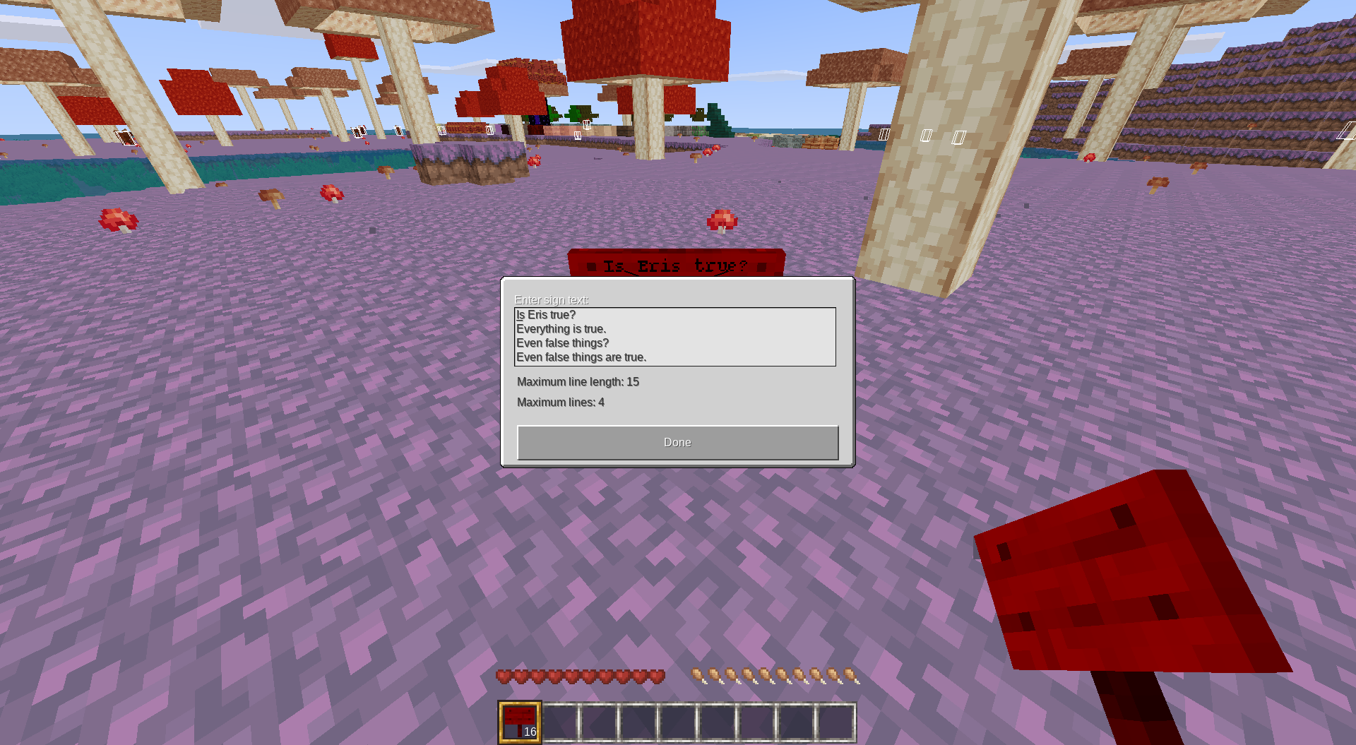 Finally editing signs instead of writing a new one every time...thank you very much for that :-) ...but we can no longer color the text once your mod is installed. When trying to color, the text box appears and the held color is gone (we decided that the editing functionality on our server is more important than coloring the text).