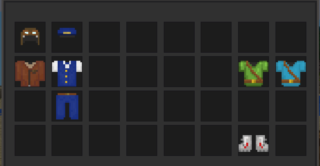 At present this mod contains: -Aviator cap and jacket -Conductor cap and vest -Mese tech armor -Multiple colours of jeans -Green and blue adventurer tunics -Joggers -Leather gloves