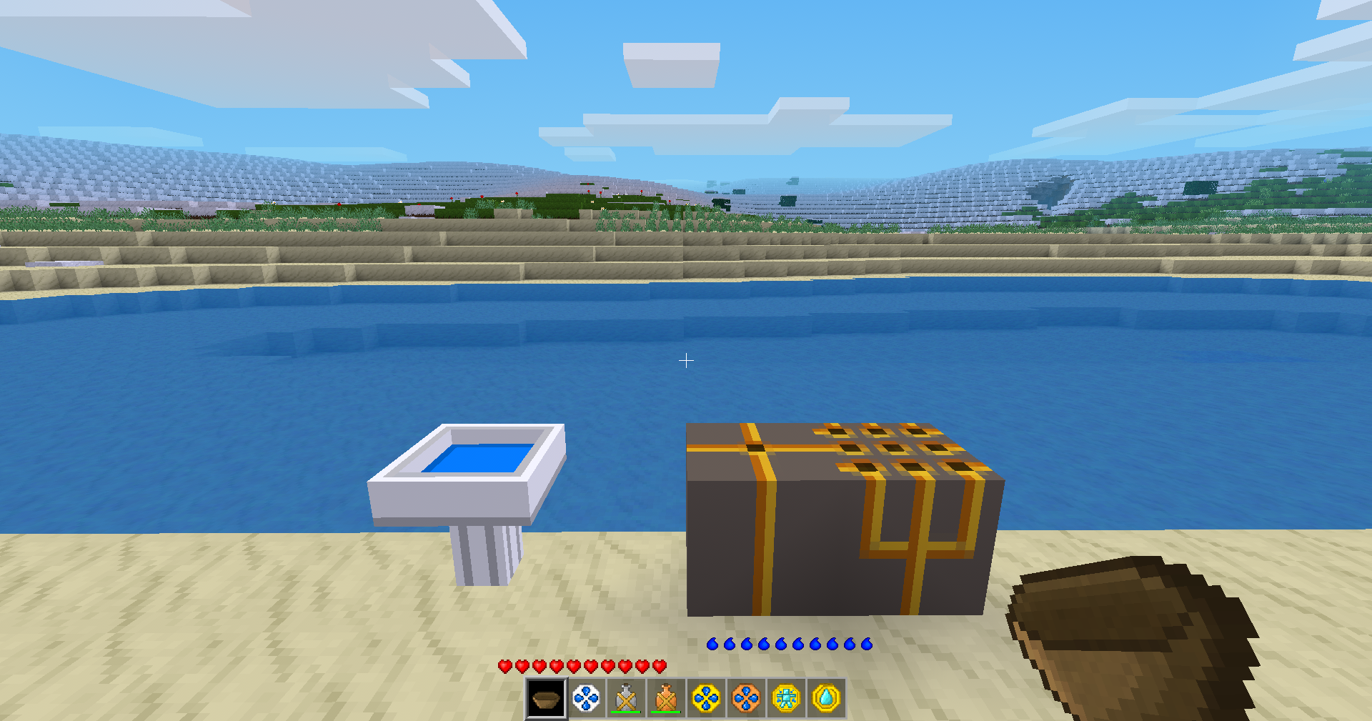 Placeable fountain node(s) to fill the hydration of all players within range. Placing more nodes increases the range.