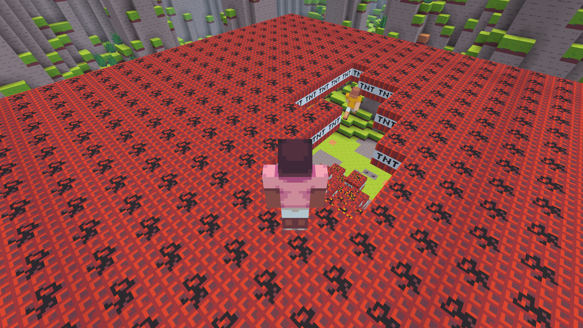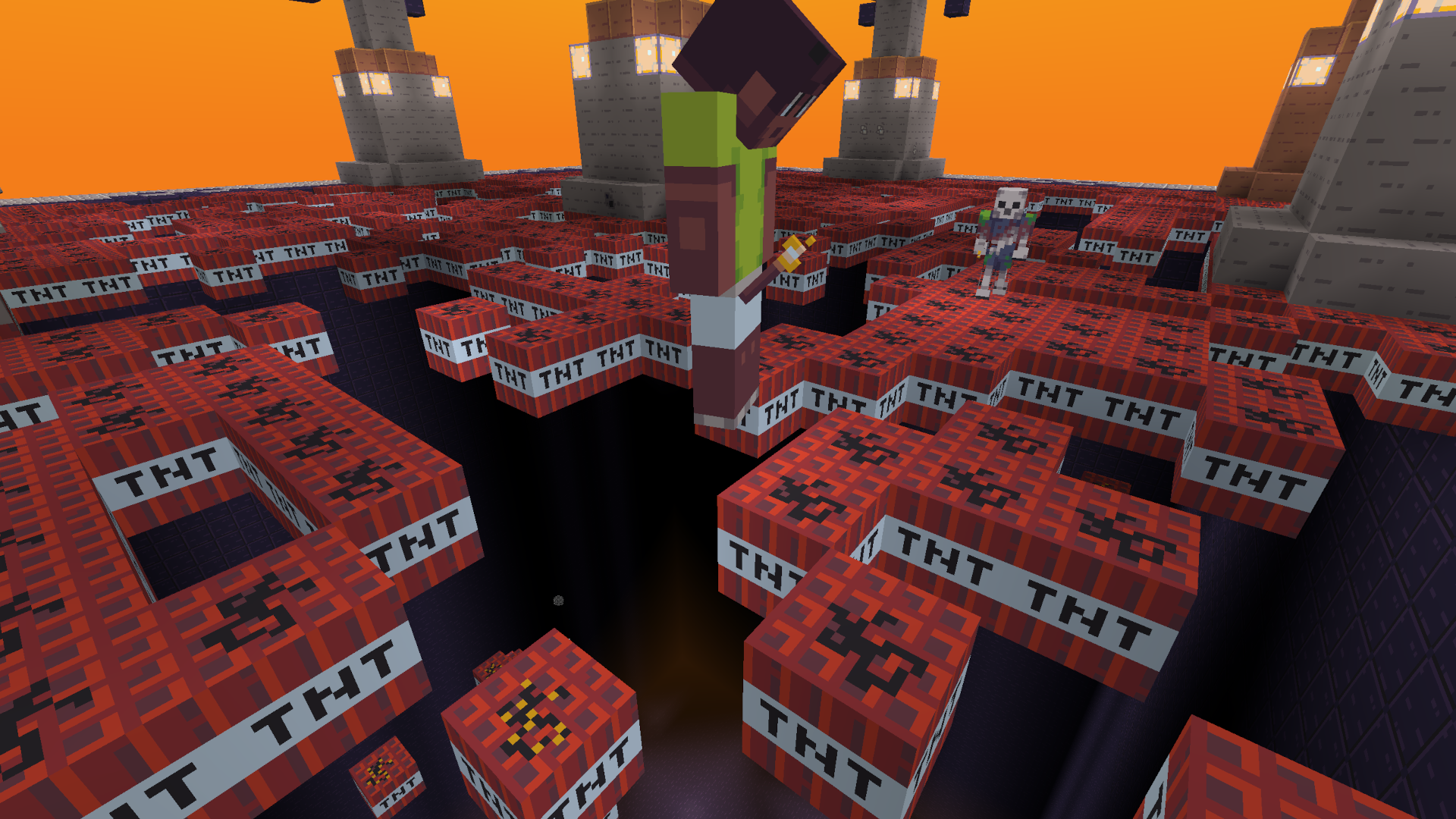 Players spawn on an unstable layer of of TNT which will fall when stepped on or when punched with a torch. The last player standing wins.